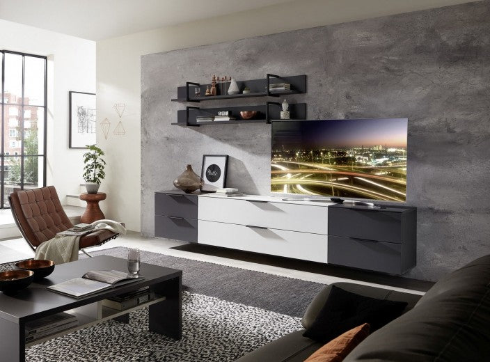 La collection Madeline est spécialement créée pour aménager un salon ou une salle à manger moderne et élégant, construit avec une attention particulière aux détails. La multitude de détails élégants associés aux tons blanc, chêne et gris foncé souligne le caractère original de cette collection.