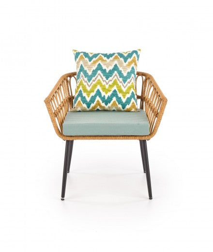 Fauteuil fixe en rotin synthétique, avec pieds en métal Gardena Naturel / Multicolore, l70xA58xH71 cm