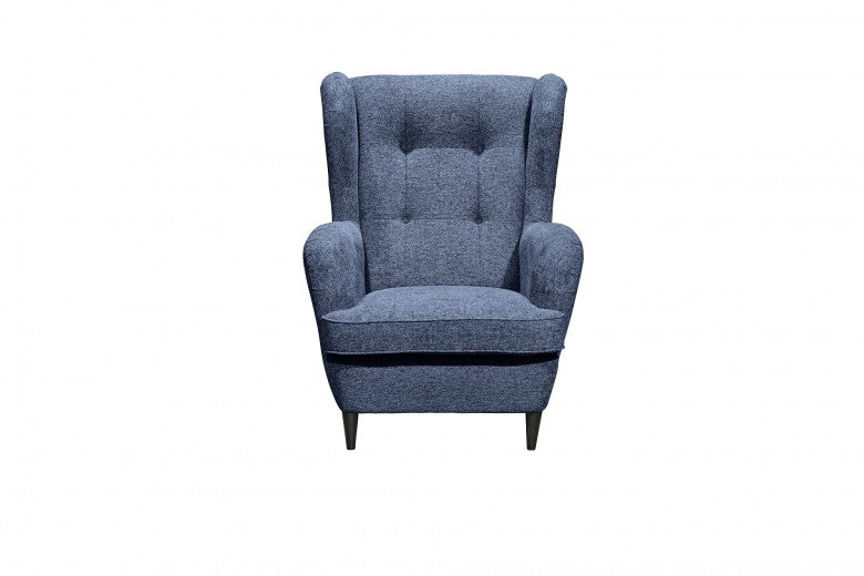 Fauteuil fixe rembourré avec tissu et pieds en bois, Oskard Bleu, l78xA98xH102 cm
