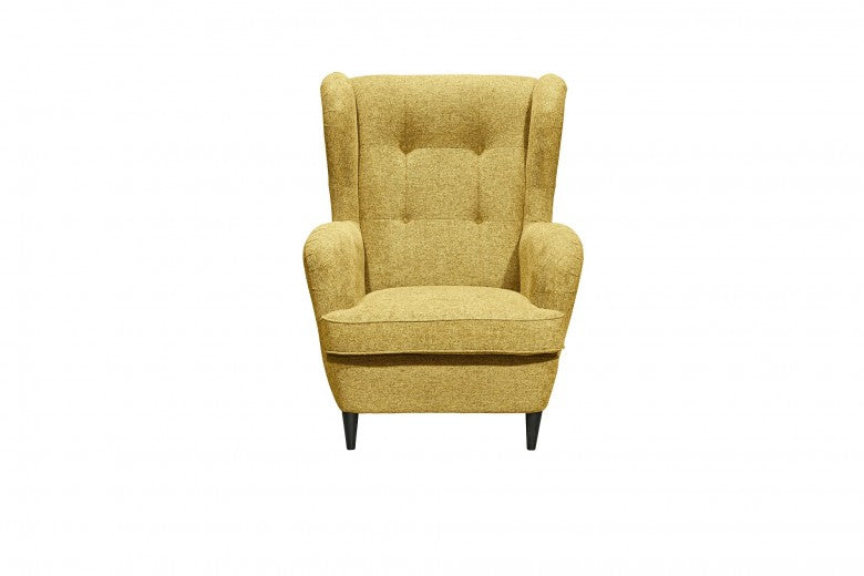 Fauteuil fixe rembourré avec tissu et pieds en bois, Oskard Mustariu, l78xA98xH102 cm