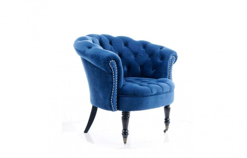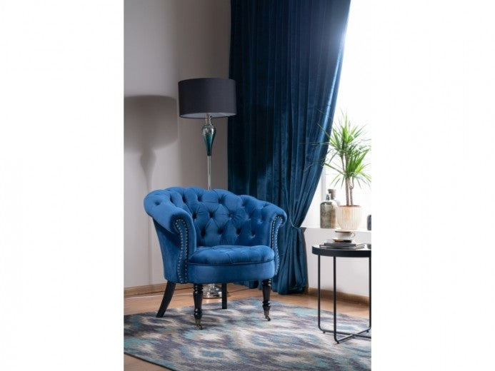 Fauteuil fixe tapissé de tissu et pieds en bois Philips Velvet, Bleu foncé, l87xA78xH83 cm
