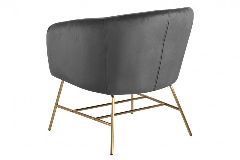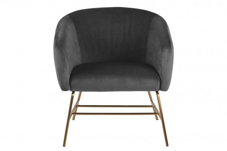 Fauteuil fixe tapissé de tissu et pieds en métal Velours Ramsey Gris Foncé / Laiton, l72XA67xH76 cm
