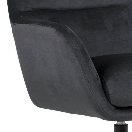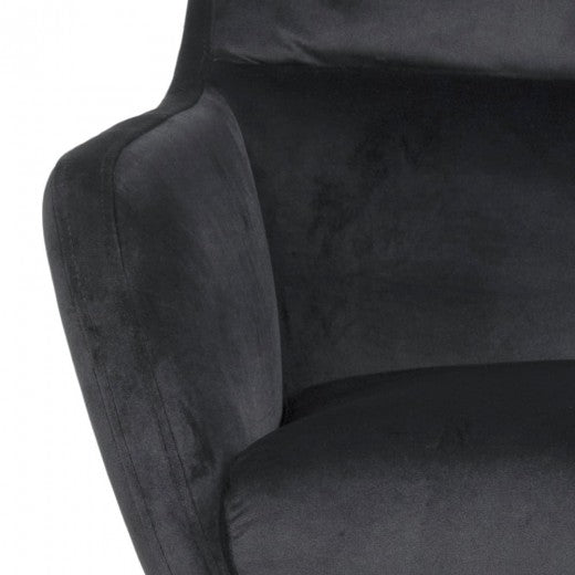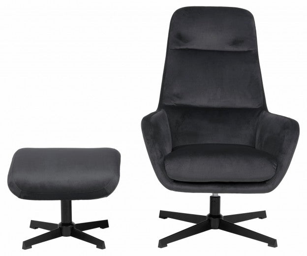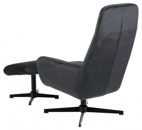 Fauteuil pivotant rembourré avec tissu + Tabouret Trafford Velours Gris foncé, l70xA122xH103,5 cm