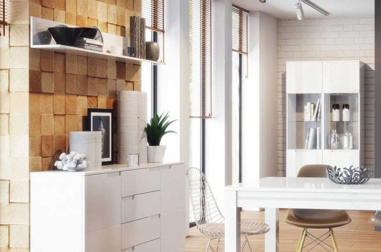 La collection Gabrielle est la solution idéale pour ceux qui veulent un intérieur moderne, spacieux et original. Abat-jour blanc brillant en combinaison avec les poignées subtilement intégrées dans