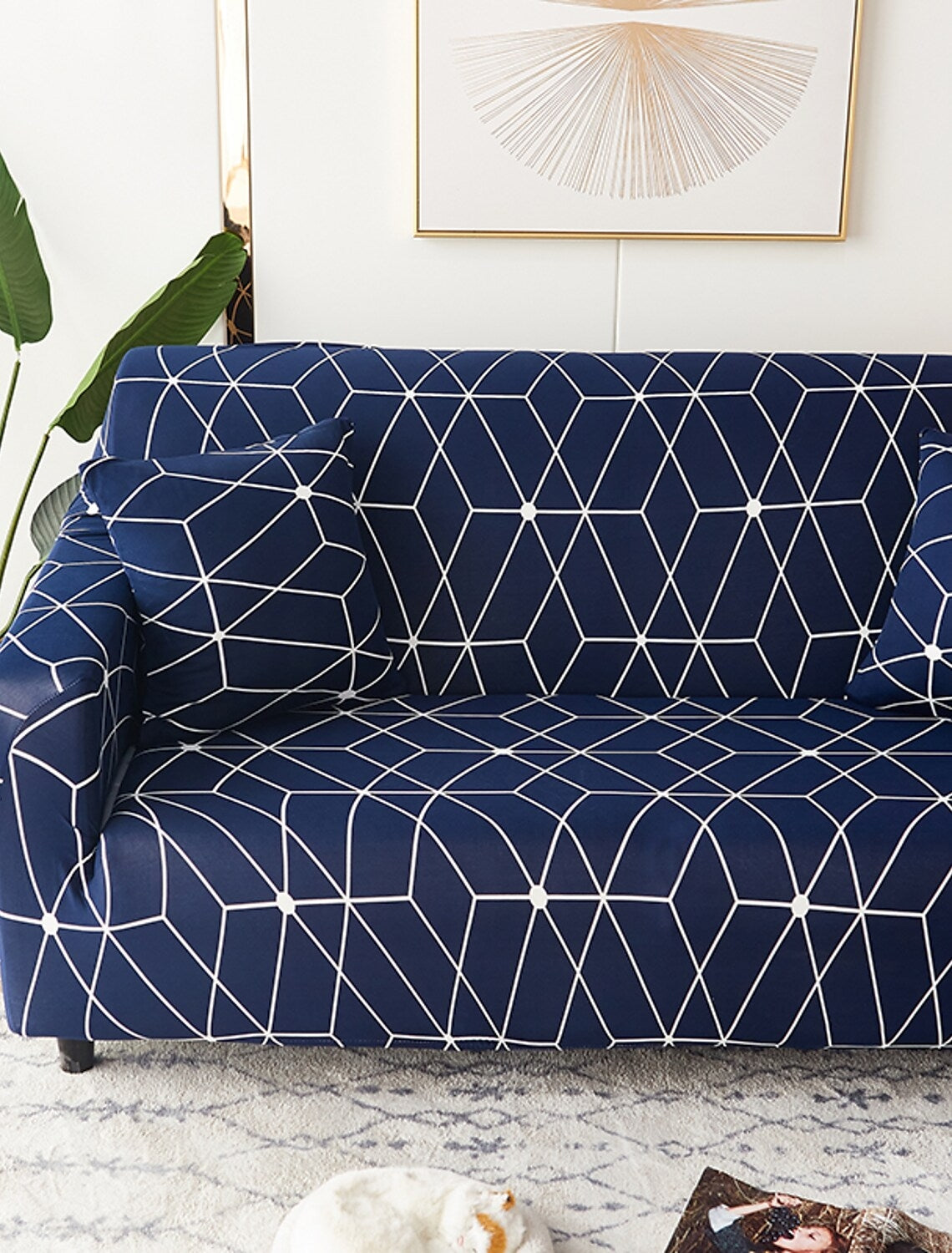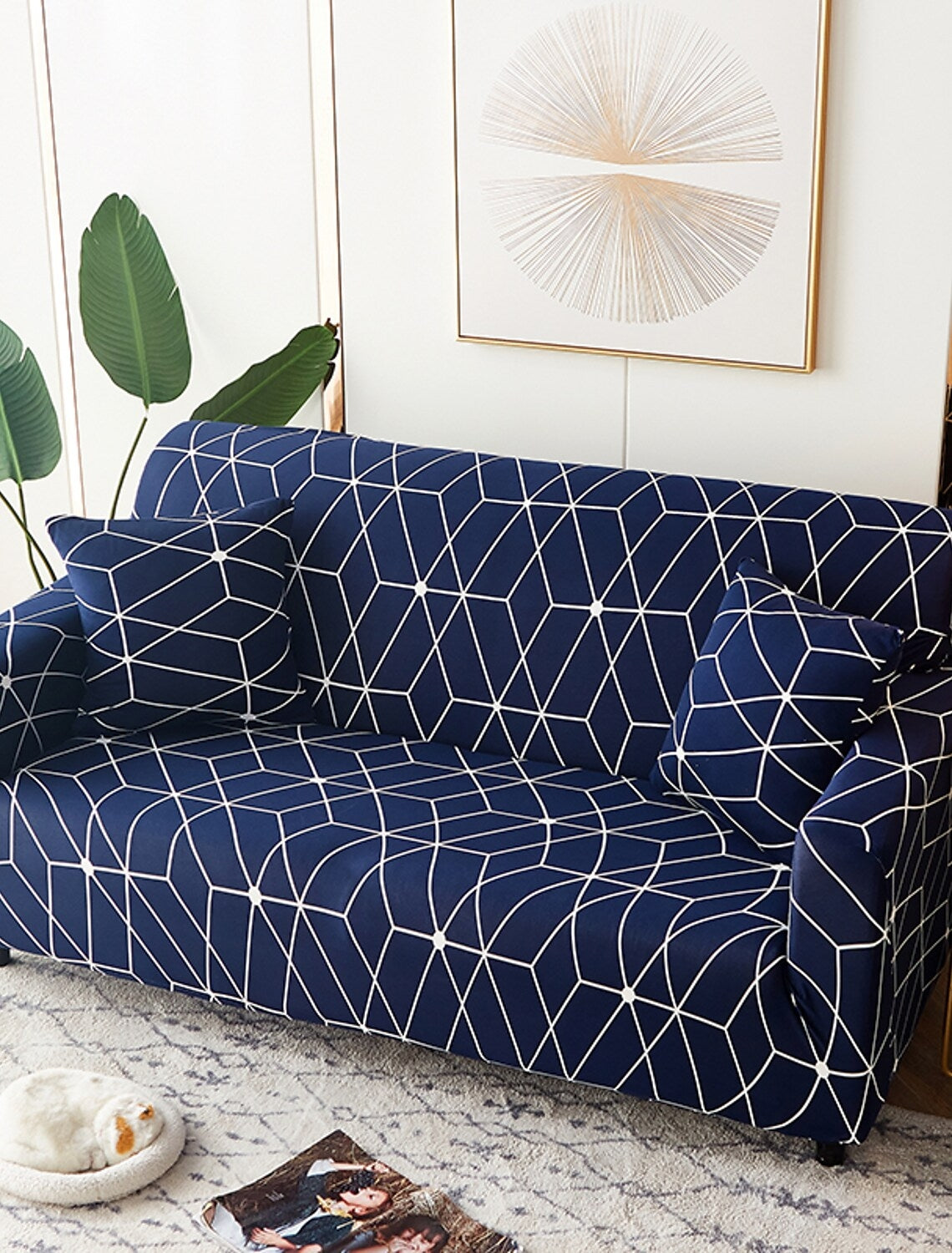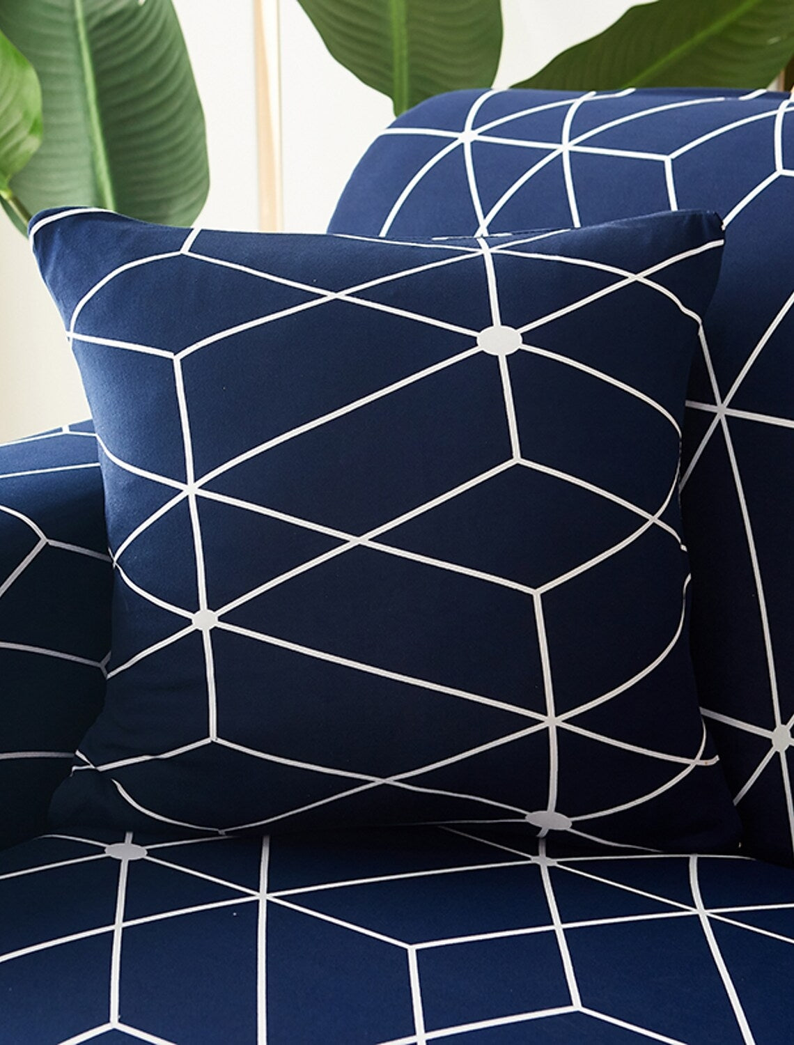 Housse de canapé élastique + 1 taie d'oreiller, Moonlight B203, Bleu / Blanc
