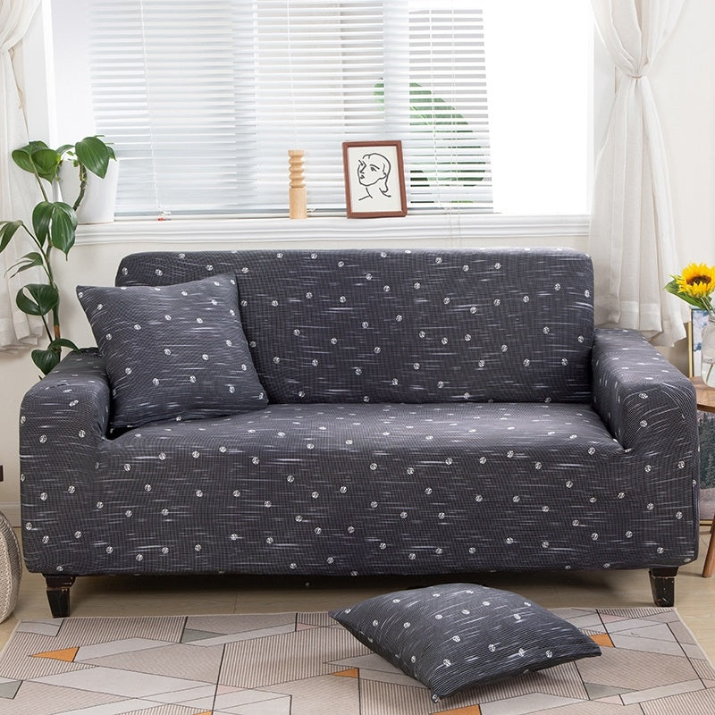 Housse de canapé élastique + 1 taie d'oreiller, Spotted A120, Gris foncé / Blanc