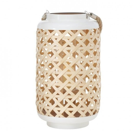 Lanterne décorative en métal et bambou Carole Naturel / Blanc, Ø22xH39 cm