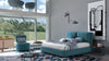 Lit avec matelas pliant et coffre de rangement, tapissé de tissu, Frise Turquoise, 200 x 160 cm