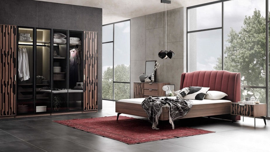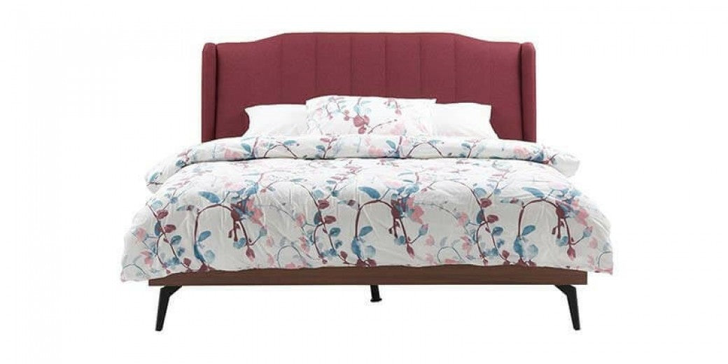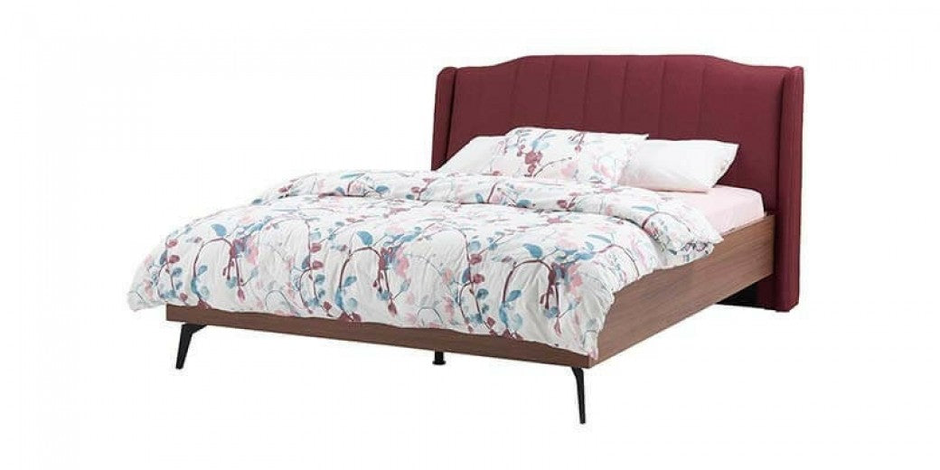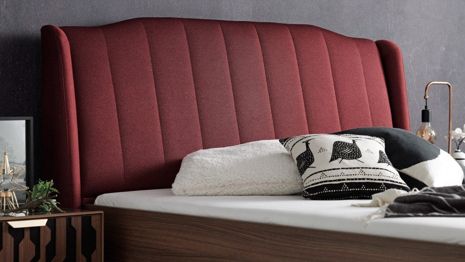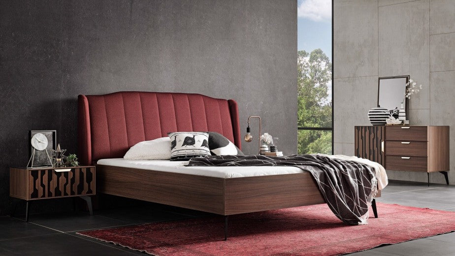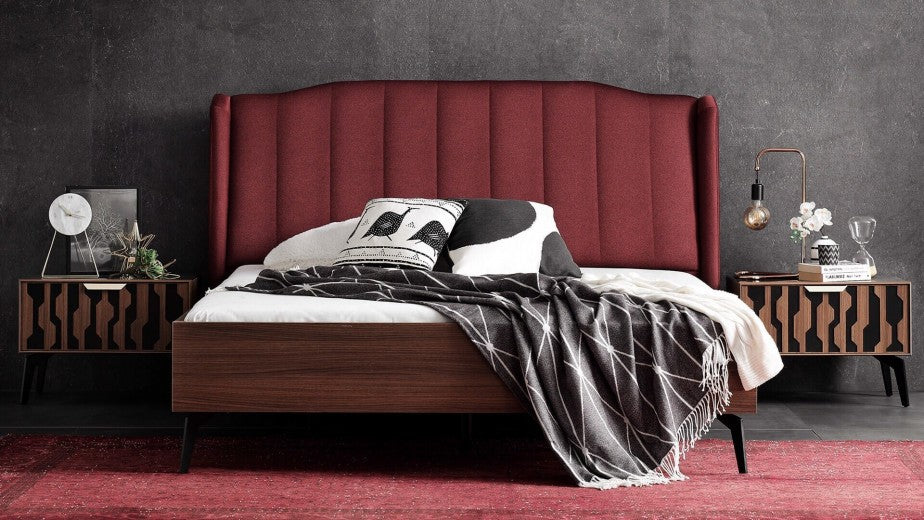 Lit en bois et rembourré avec Louisa Bordeaux / Noyer-200 x 180 cm