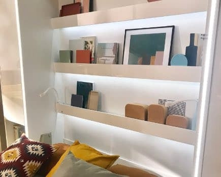 Quelques secondes suffisent pour transformer votre élégant salon en une chambre accueillante. Invités annoncés sur les cent derniers mètres ? Pas de problème, le lit disparaît et laisse place à un espace généreux pour recevoir des invités. Vous vous êtes débarrassé de la fabrication du lit, fixez les couettes à l'aide de sangles spéciales, poussez et C'EST FAIT !