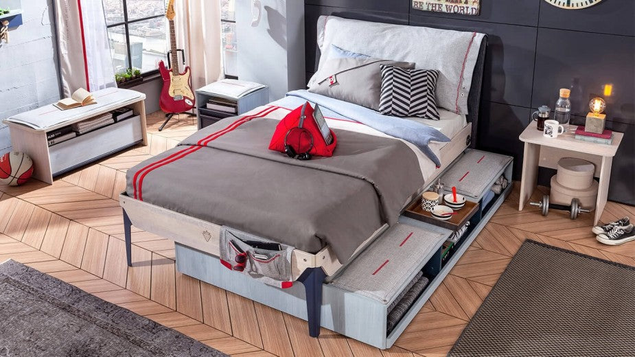 La collection Trio se distingue par ses couleurs riches, son approche créative et ingénieuse dans l'aménagement d'une chambre d'adolescent. Un jeune peut devenir créateur de son espace, qui reflète son style et sa personnalité, et cela peut être fait avec l'aide de cette collection.