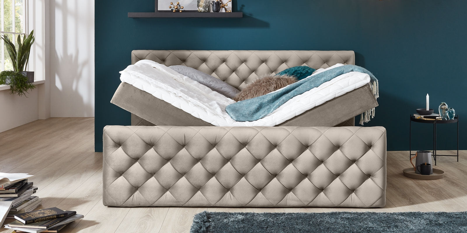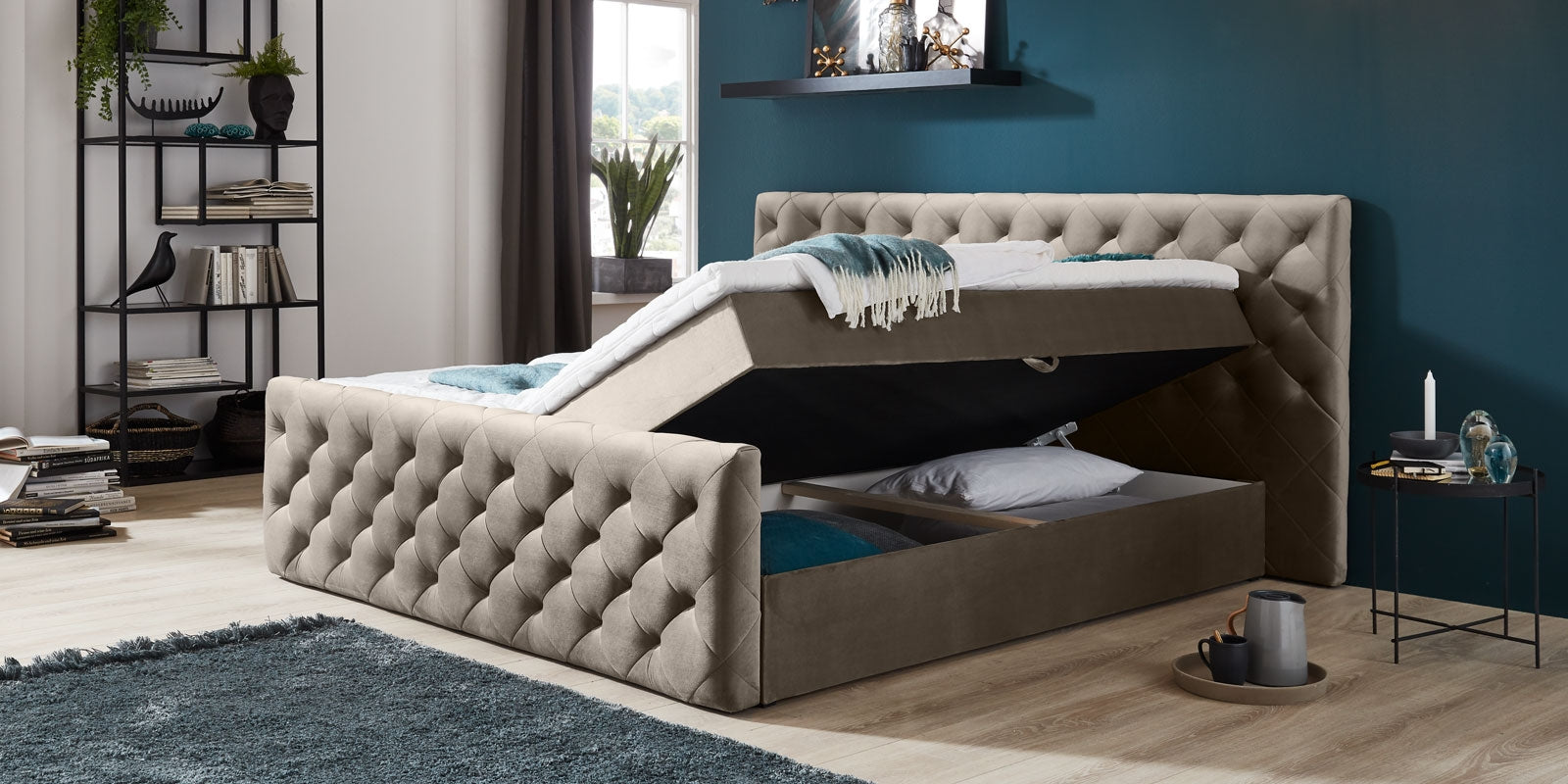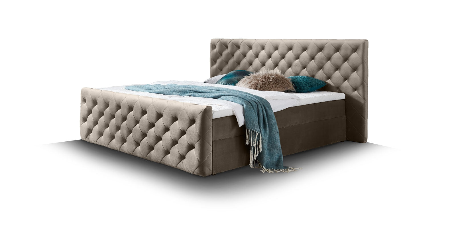 Les lits Boxspring offrent du confort en remplaçant le cadre et le cadre de lit par une structure en bois massif de la meilleure qualité, le matelas à ressorts Bonell, qui forme le coffre.
