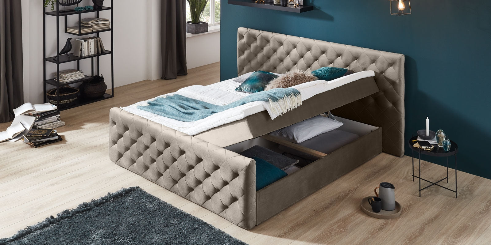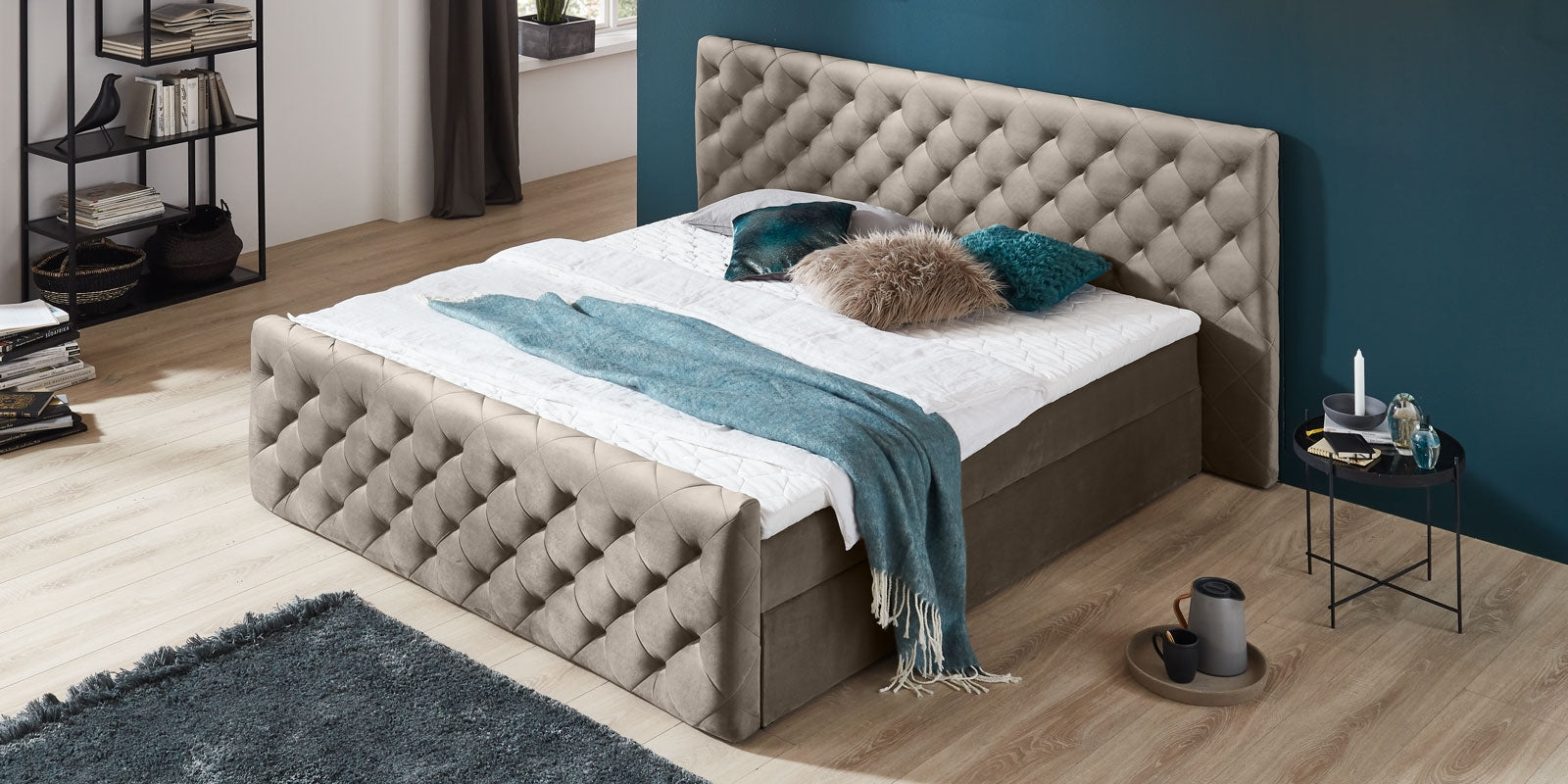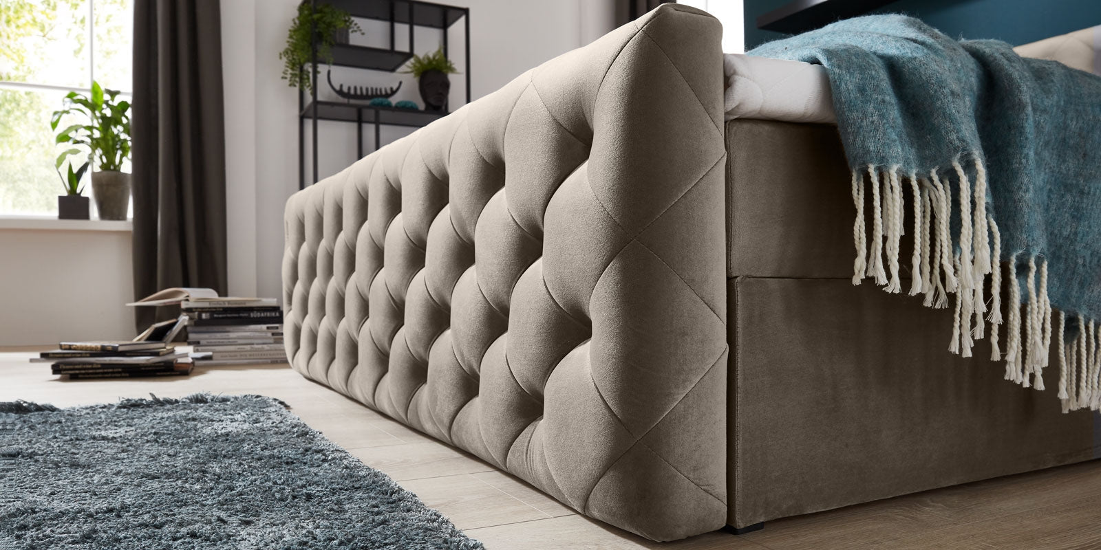 Les lits Boxspring offrent du confort en remplaçant le cadre et le cadre de lit par une structure en bois massif de la meilleure qualité, le matelas à ressorts Bonell, qui forme le coffre.