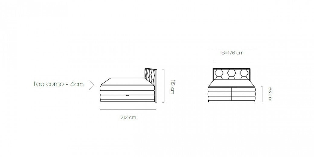 Pour le matelas 200 x 160 cm: Longueur: 212 cm, largeur: 176 cm, hauteur de tête: 115 cm