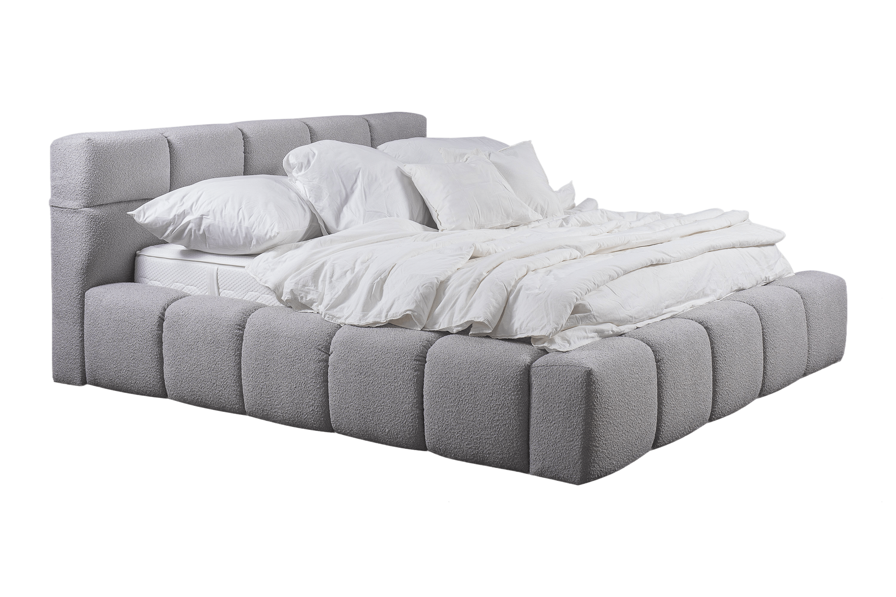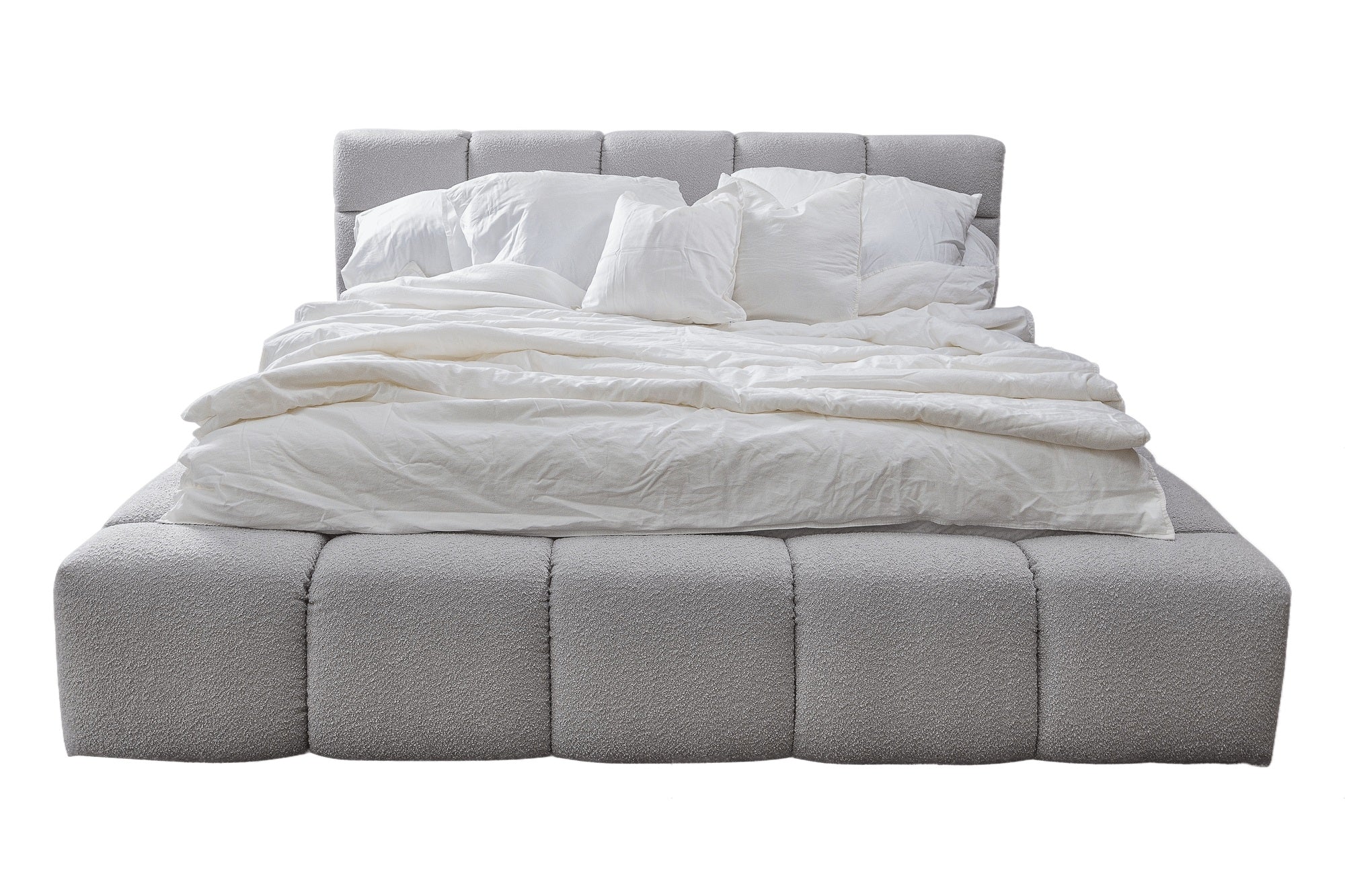 Lit rembourré avec tissu bouclé, Cadre de lit pliant avec espace de rangement, Baloo Gris