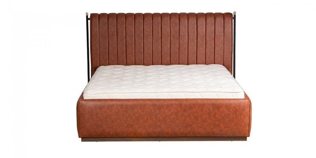 Lit rembourré en cuir écologique Matilda Caramisu-200 x 180 cm