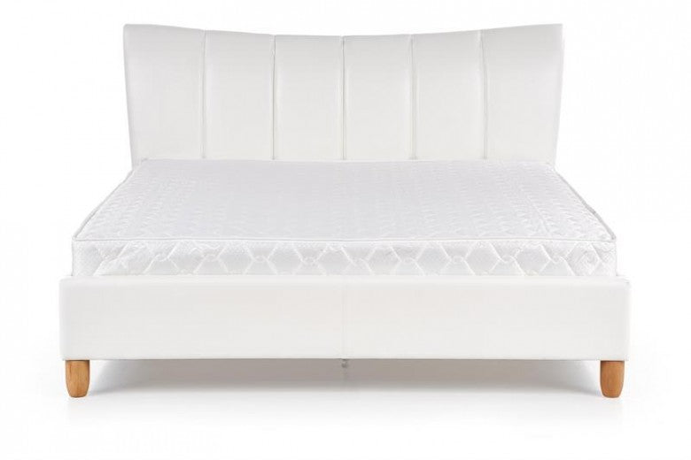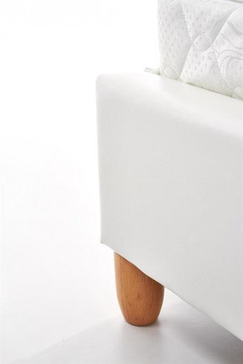 Le lit est construit sur une structure en bois entièrement recouverte de cuir écologique, durable dans le temps et très facile d'entretien.
