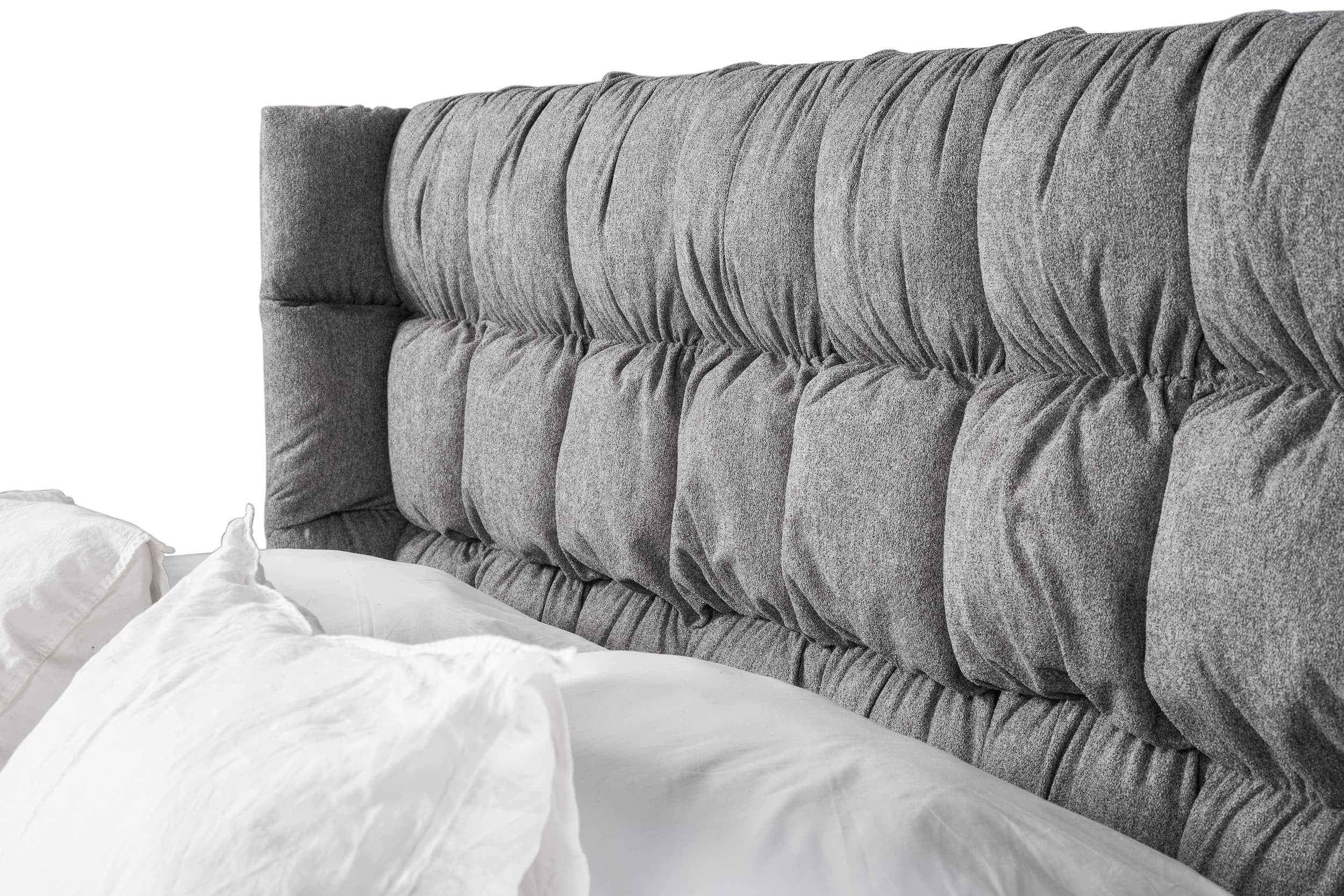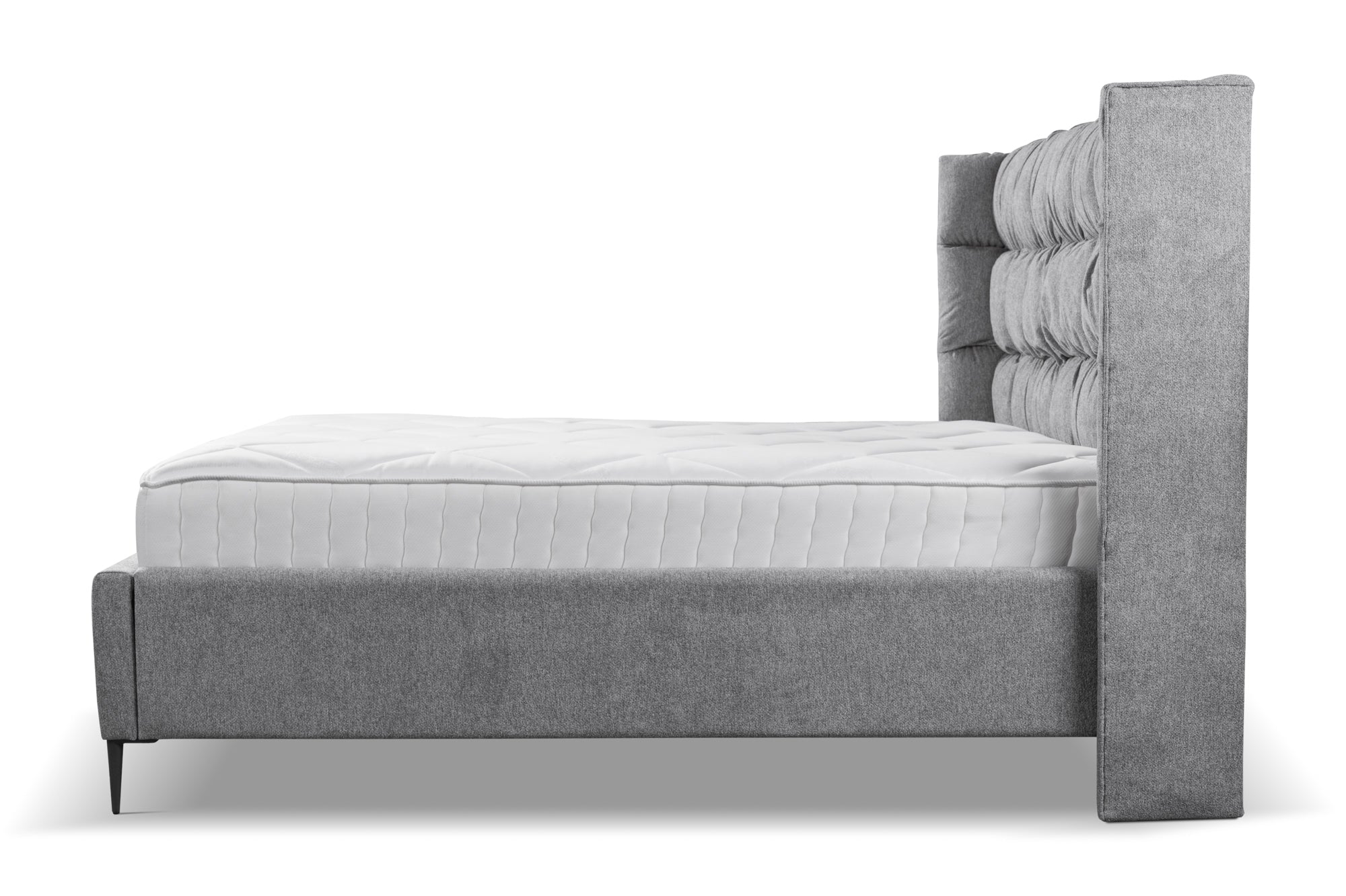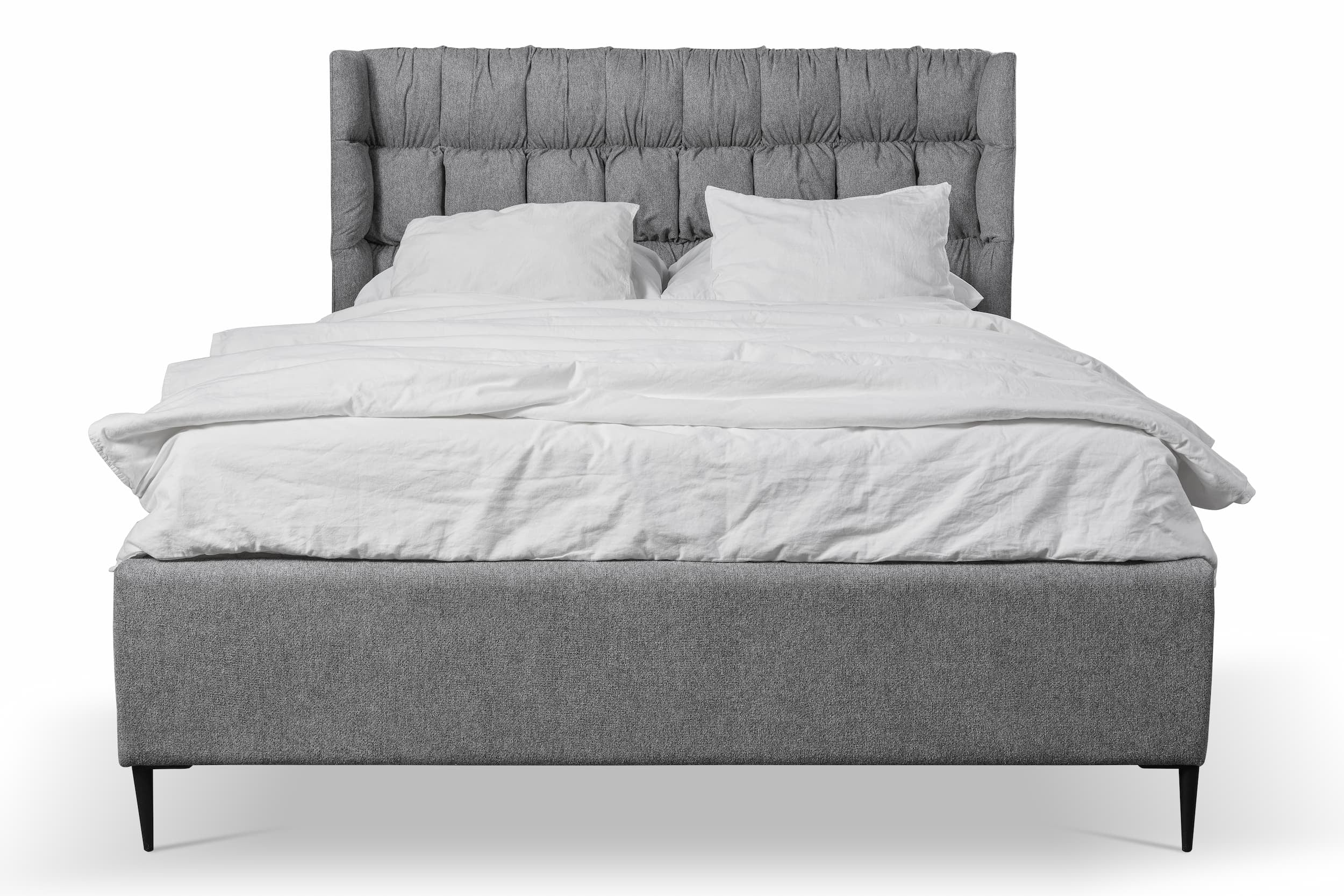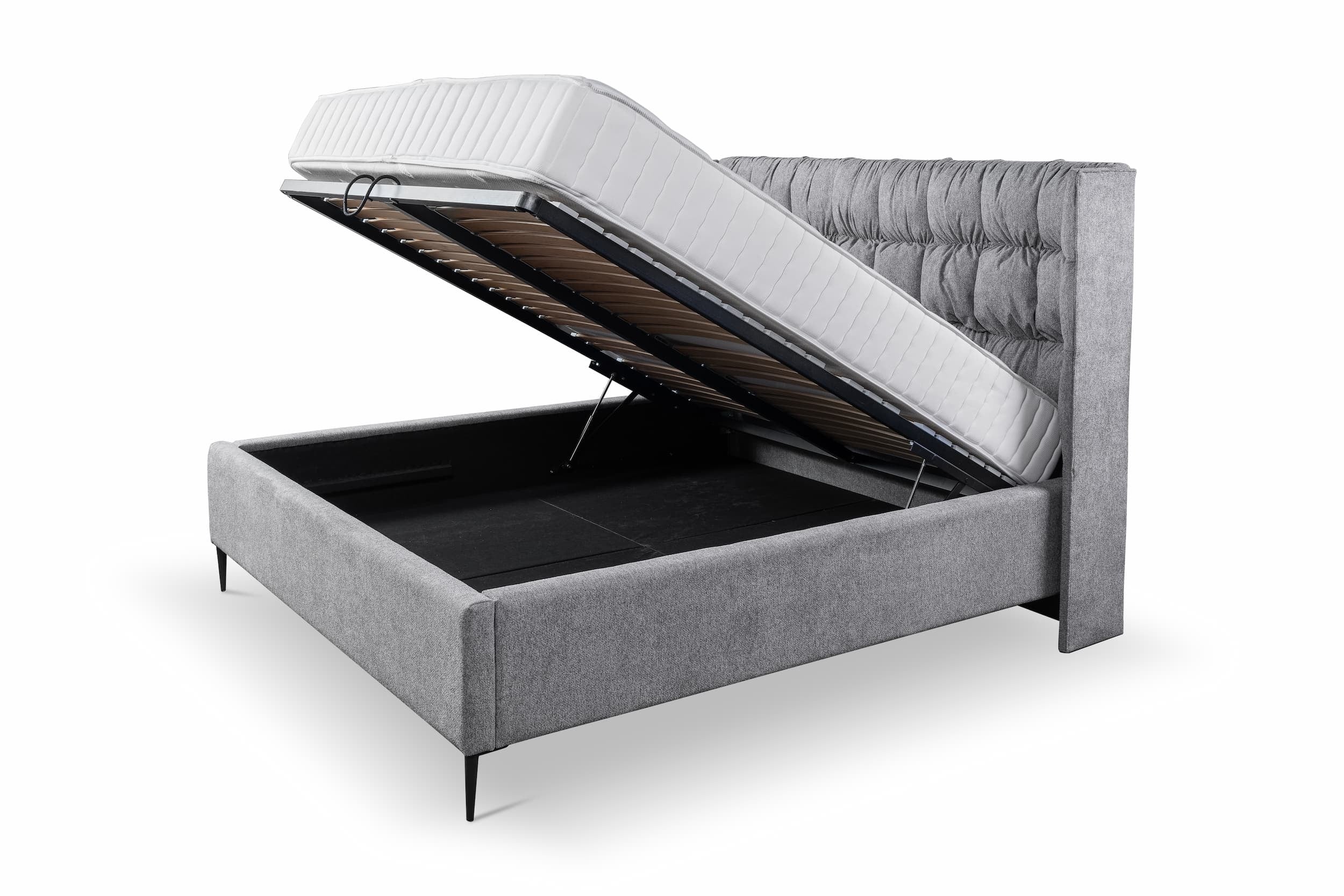Lit rembourré en tissu, Cadre de lit pliant avec espace de rangement, Viviene, Gris