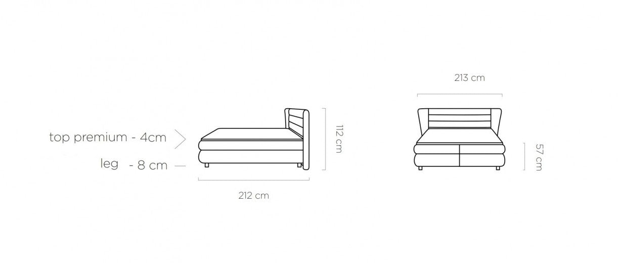 Pour le matelas 200 x 160 cm: Longueur: 212 cm, largeur: 213 cm, hauteur de tête: 112 cm