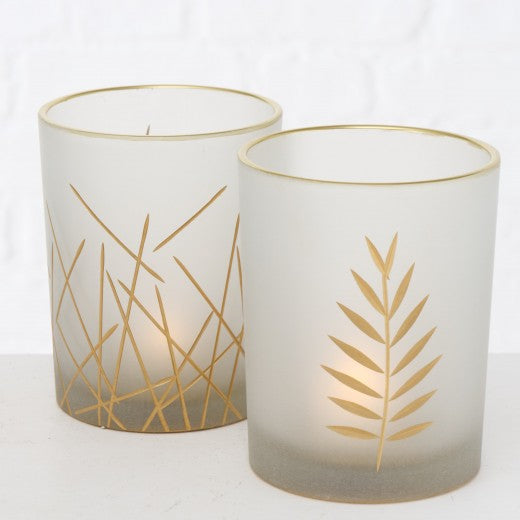 Lot de 2 bougeoirs, en verre Narino doré, Modèles Assortis, Ø7xH8 cm / Ø10xH12 cm