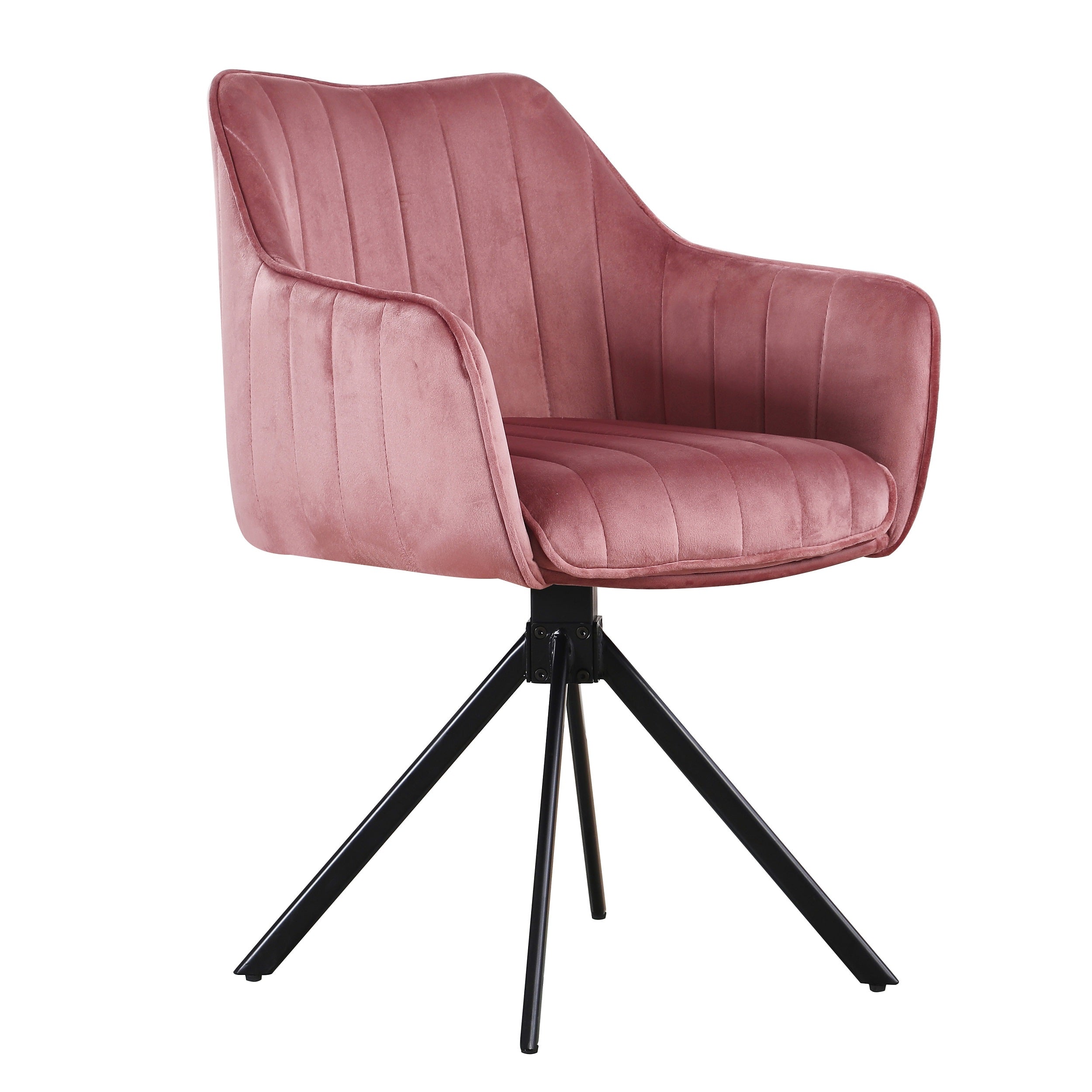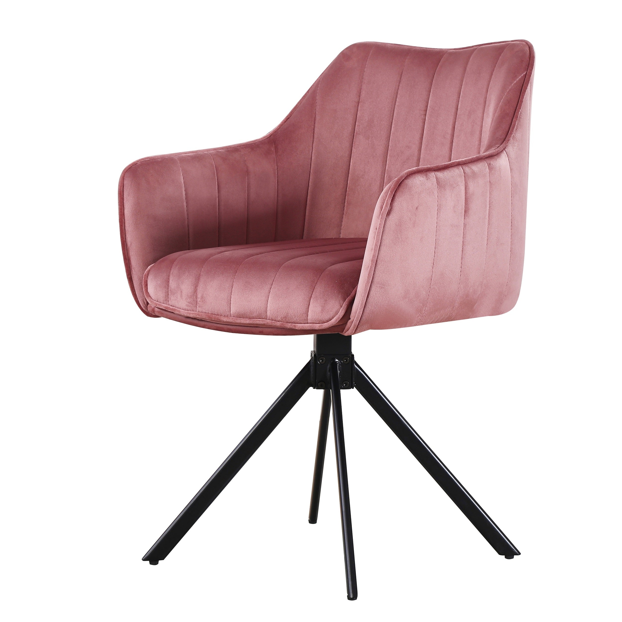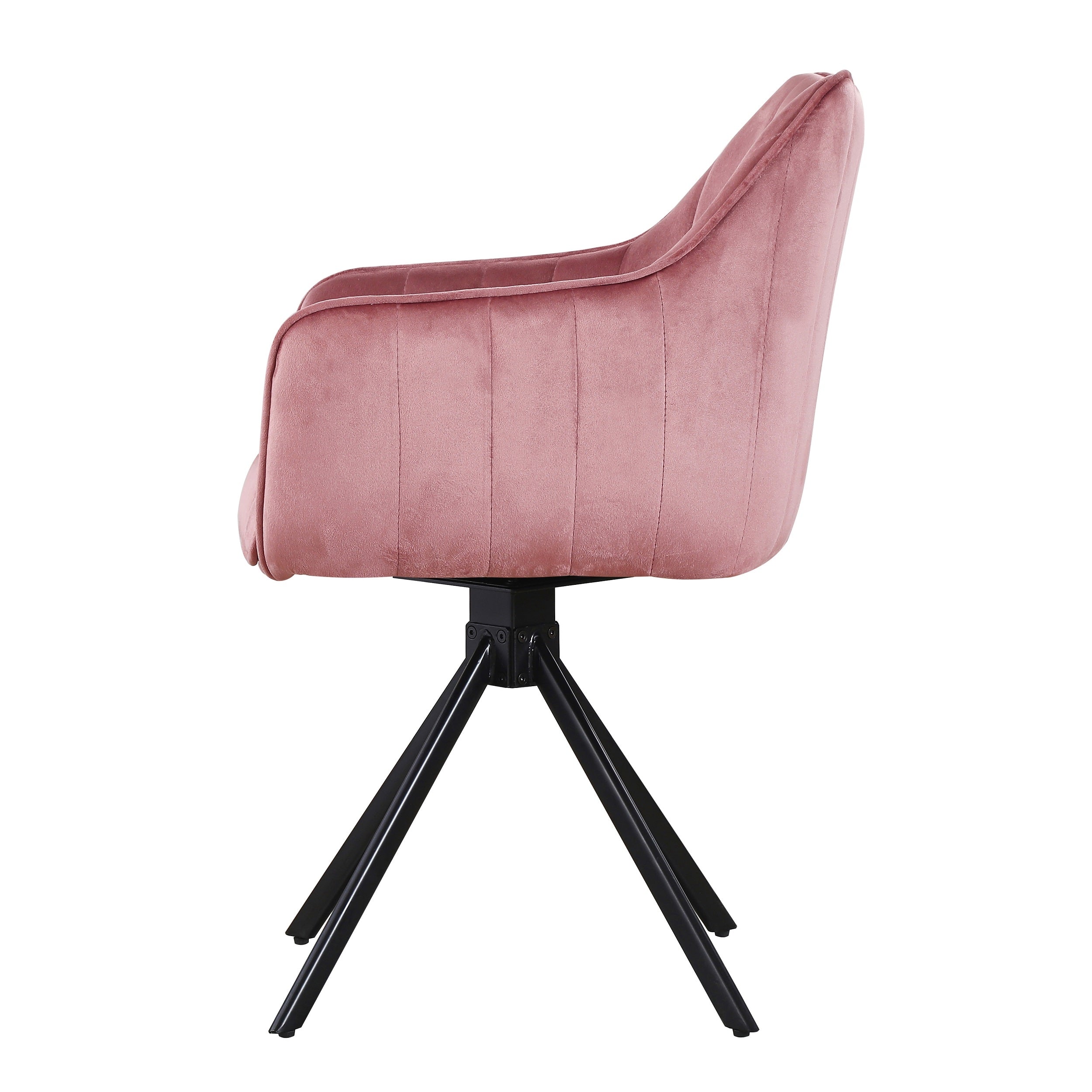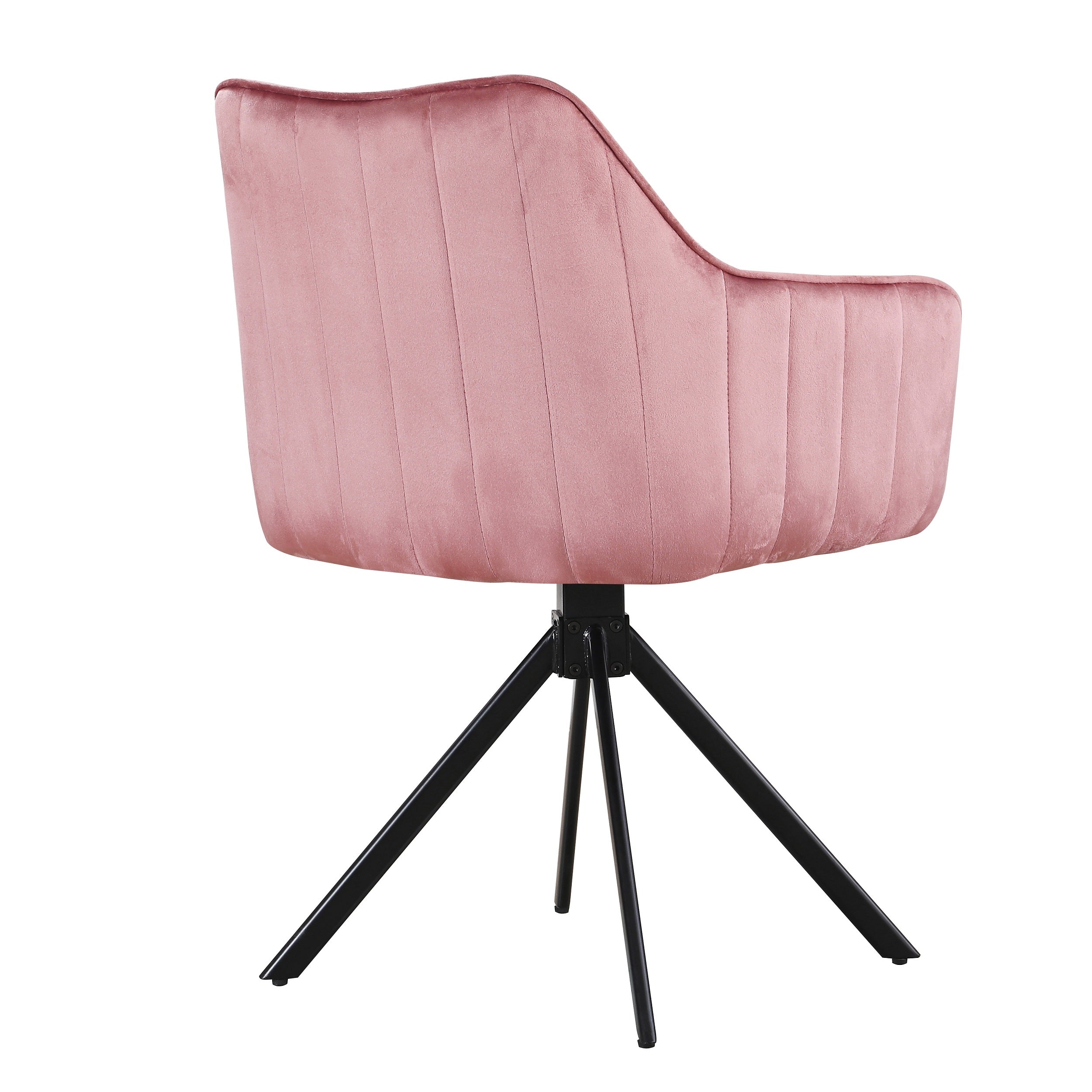 Lot de 2 chaises pivotantes rembourrées avec pieds en tissu et métal, Alex, Velours Rose / Noir, L45xl59xH86 cm