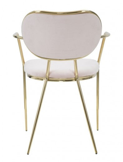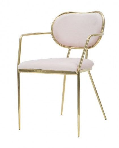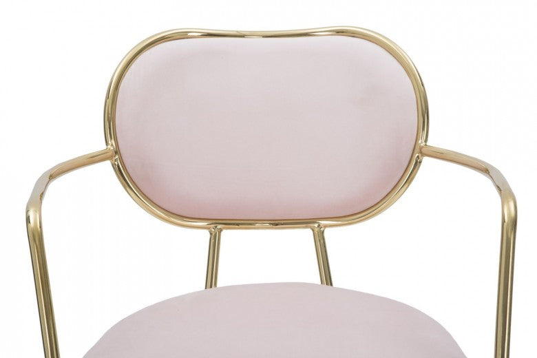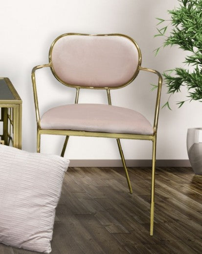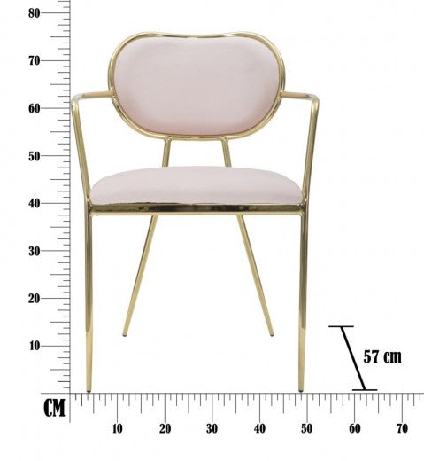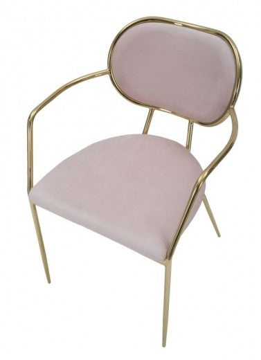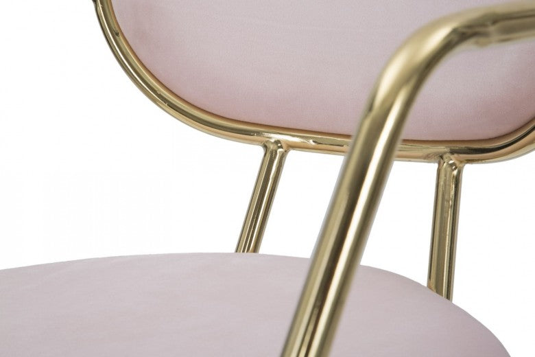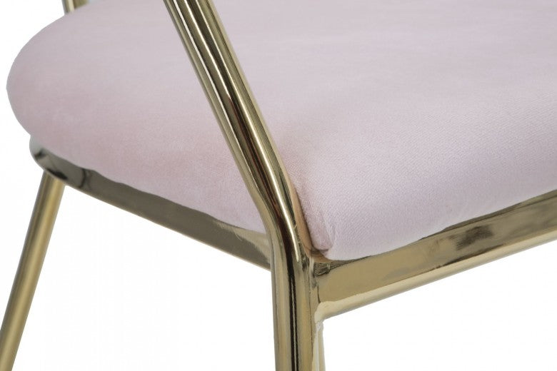Lot de 2 chaises rembourrées en tissu, avec pieds en métal Velours Fin Rose/Or, l54xA57xH76 cm