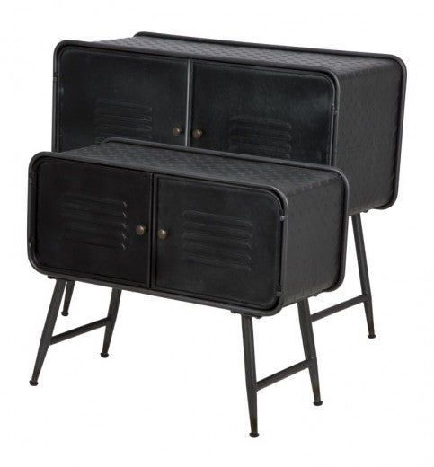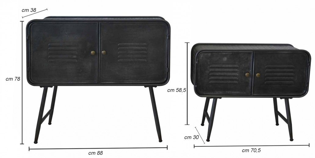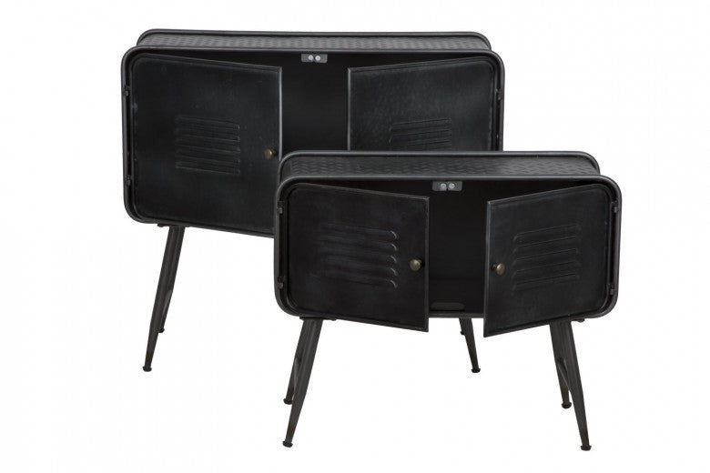 Lot de 2 commodes en métal, avec 2 portes Couple Ecole Noir, l88xA38xH78 cm / l70,5xA30xH58,5 cm
