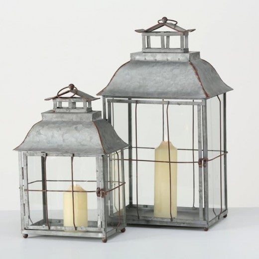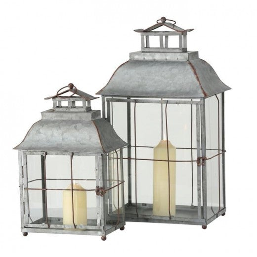 Lot de 2 lanternes décoratives, en métal Alyson Gris, L35xl27xH62 cm / L29xl21xH45 cm