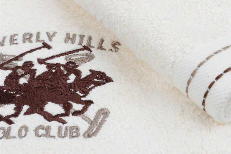 Lot de 2 serviettes de bain en coton, Beverly Hills Polo Club 401 Crème, 50 x 90 cm