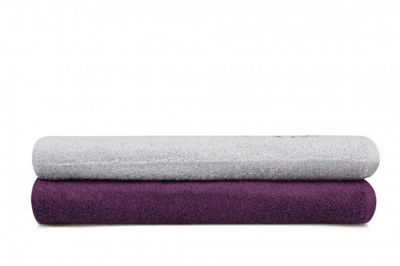 Lot de 2 serviettes de bain en coton, Beverly Hills Polo Club 402 Lilas / Gris, 70 x 140 cm