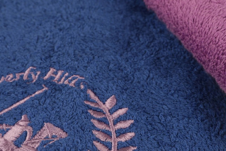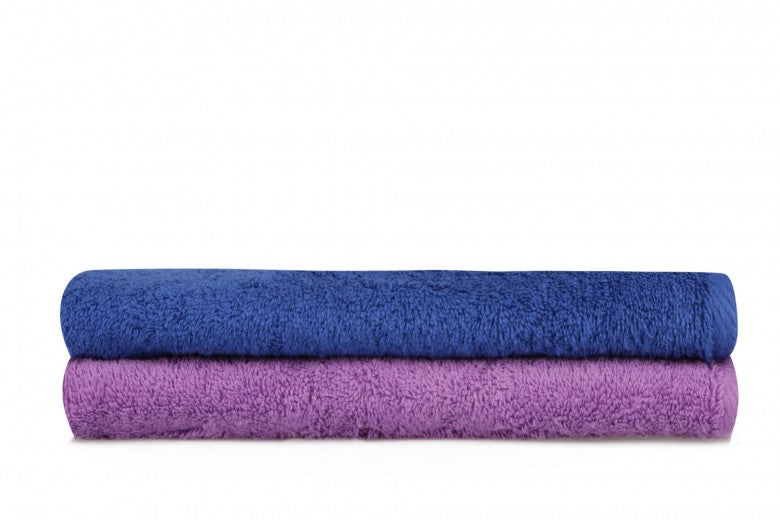 Lot de 2 serviettes de bain en coton, Beverly Hills Polo Club 402 Marine / Lilas, 50 x 90 cm