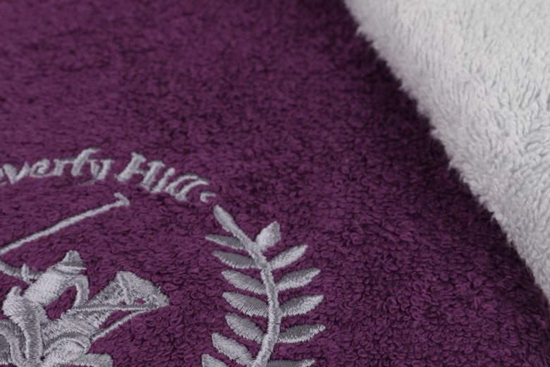 Lot de 2 serviettes de bain en coton, Beverly Hills Polo Club 402 Violet / Gris Clair, 50 x 90 cm
