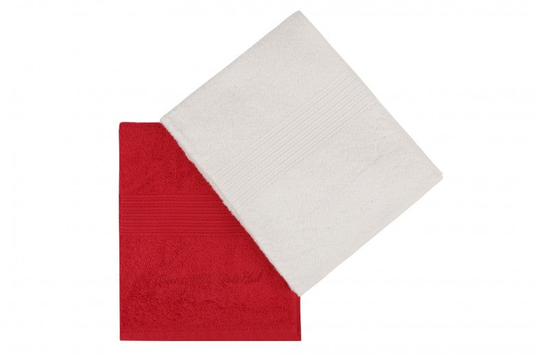 Lot de 2 serviettes de bain en coton, Beverly Hills Polo Club 404 Blanc / Rouge, 50 x 90 cm
