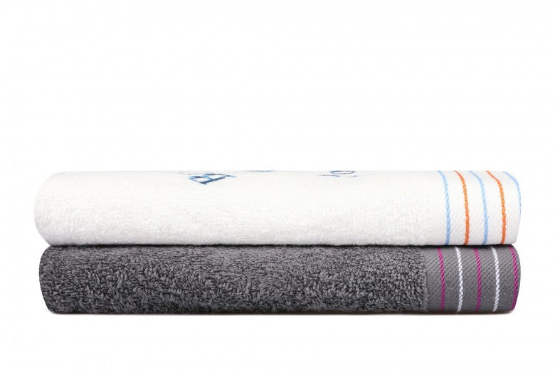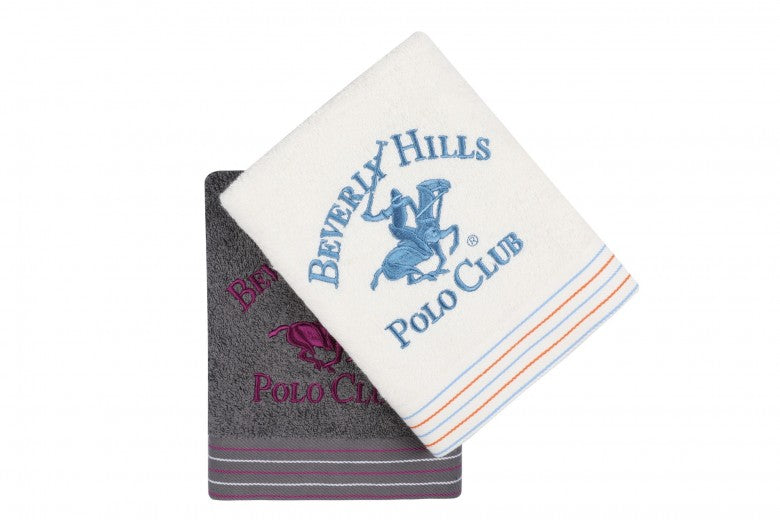 Lot de 2 serviettes de bain en coton, Beverly Hills Polo Club 405 Blanc / Gris Foncé, 50 x 90 cm
