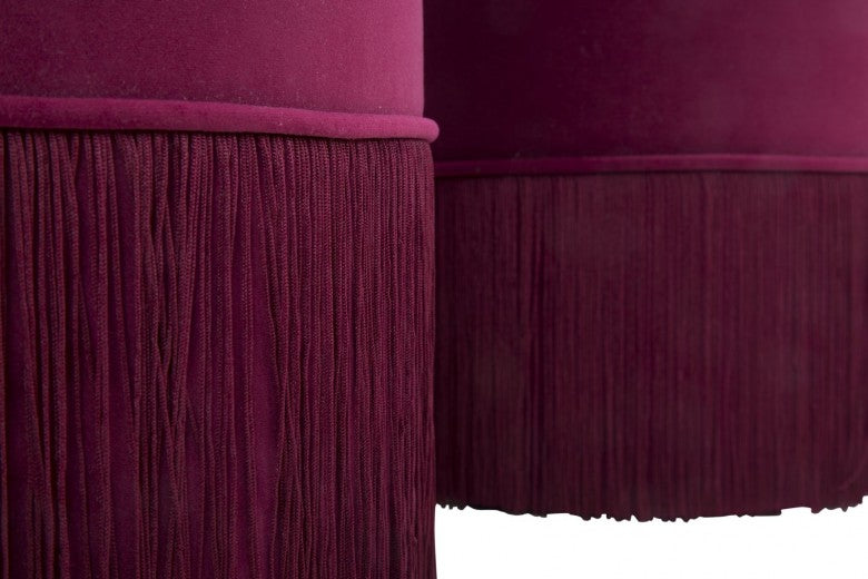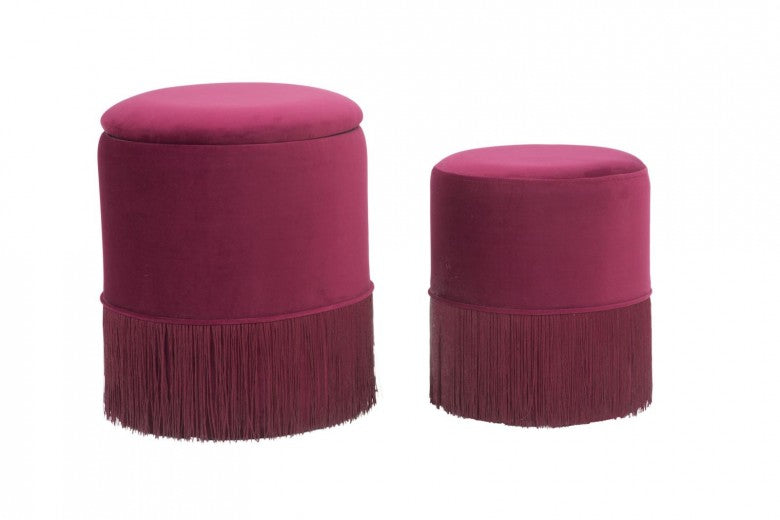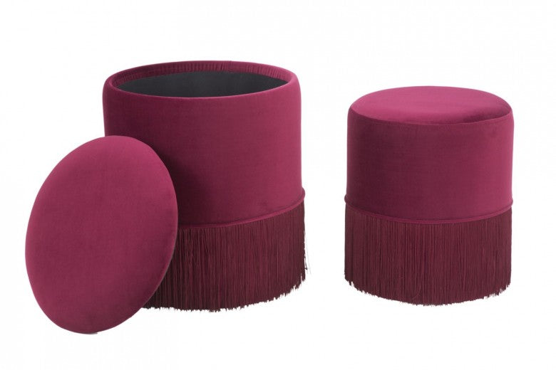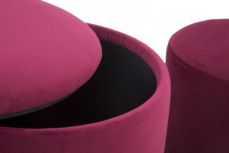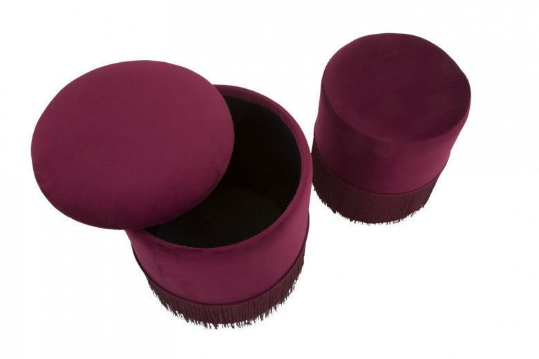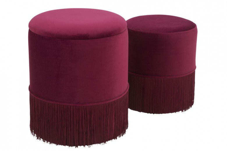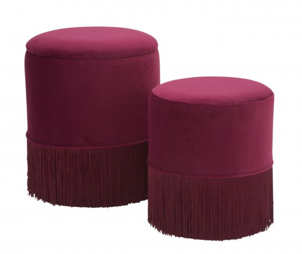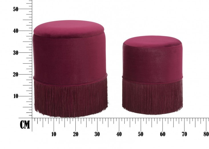 Lot de 2 tabourets rembourrés en tissu Lines Velvet Bordeaux, Ø35xH42 / Ø30xH32 cm