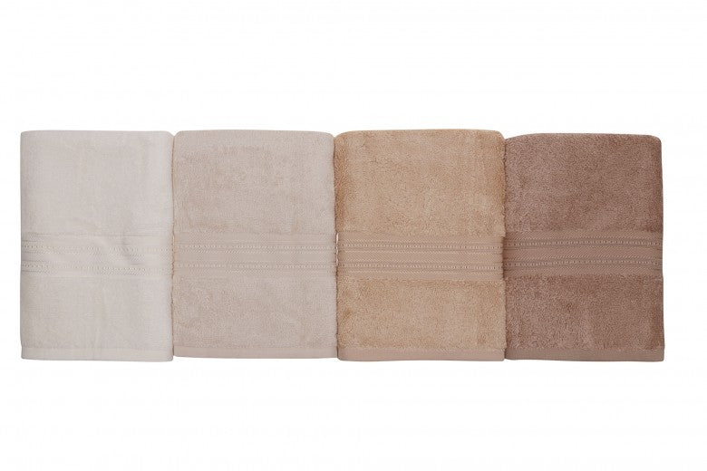 Lot de 4 serviettes de bain, Lavinya Beige / Marron, 50 x 90 cm