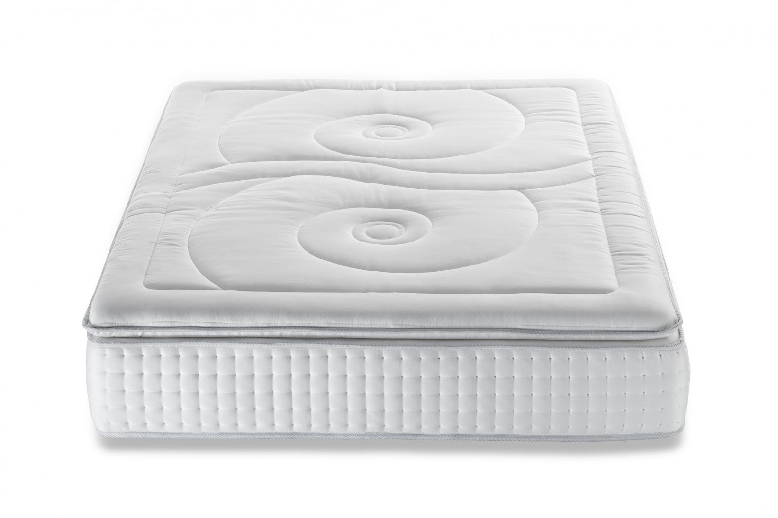 Ce matelas a une housse Made in Germany et est compacté sur un support textile en laine volumique anti-allergique, d'une densité de 1000g/m2. Dans le surmatelas de surface, il y a une couche uniforme de 4 cm de mousse à mémoire de forme. La housse extérieure est faite d'un mélange de viscose et de coton. Ce matelas est également muni de poignées pour tourner le matelas.