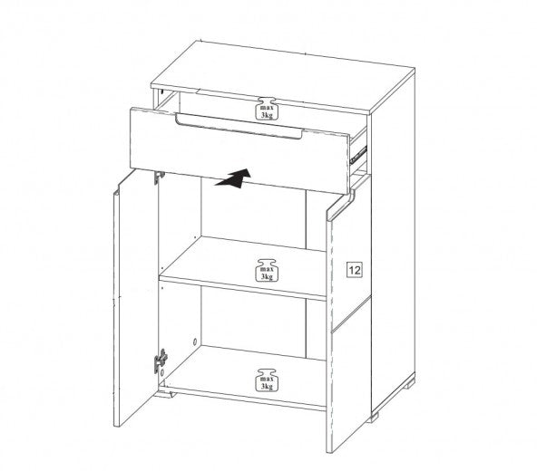 Le meuble à 2 portes et 1 tiroir Gabrielle 19 se distingue par son aspect esthétique, attrayant et moderne à la fois.