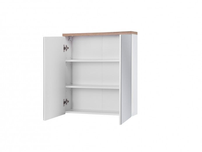 Meuble de salle de bain suspendu avec 2 portes et miroir, Bali Blanc, l60xA20xH70 cm