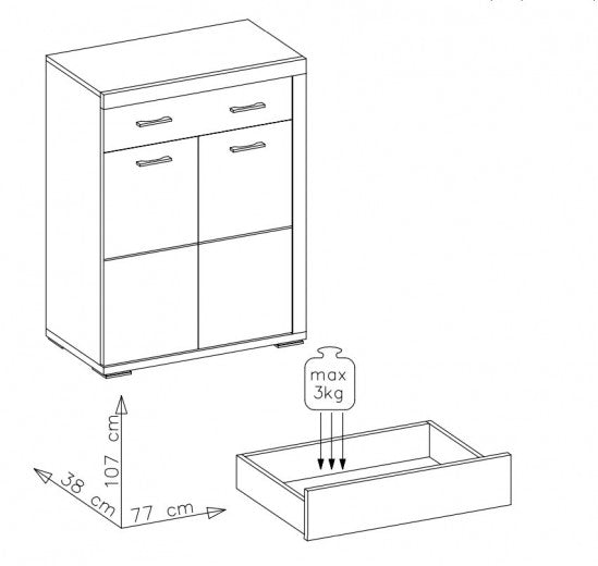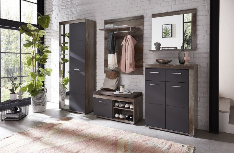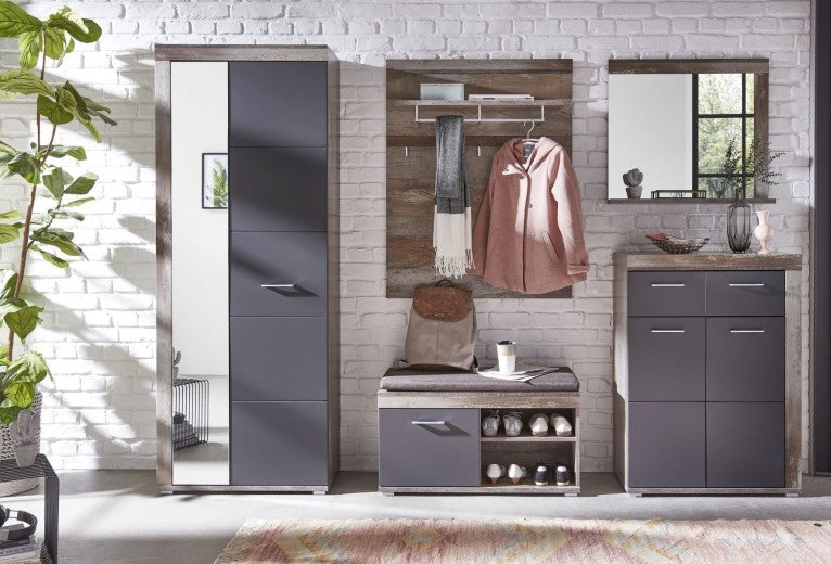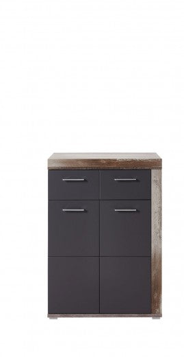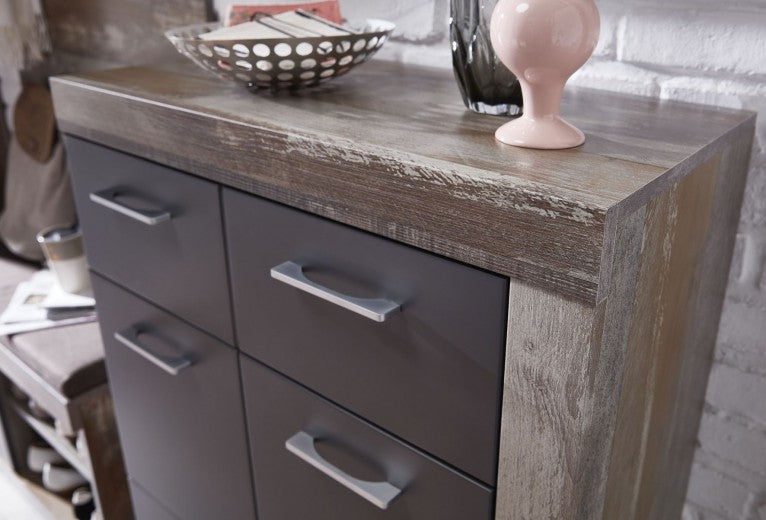 Meuble en bois aggloméré et MDF, avec 1 tiroir et 2 portes Krone Graphite / Natur, l77xA38xH107 cm
