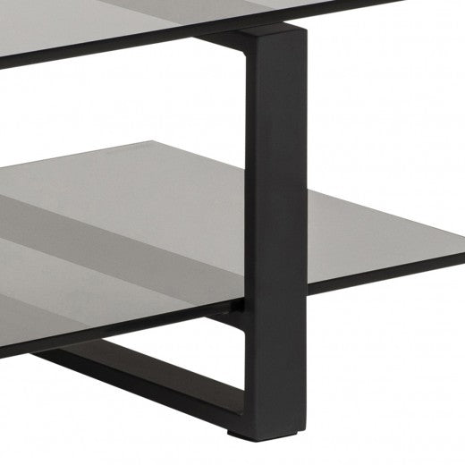 Meuble TV verre et métal Katrine Marron / Noir, l120xA45xH32 cm