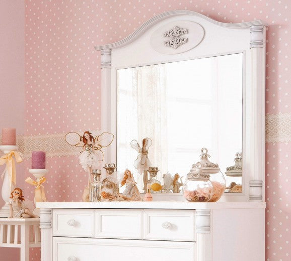 Le miroir décoratif blanc romantique pour les enfants et les jeunes est toujours une décoration intérieure inspirée choisie, qui convient à n'importe quelle pièce.
