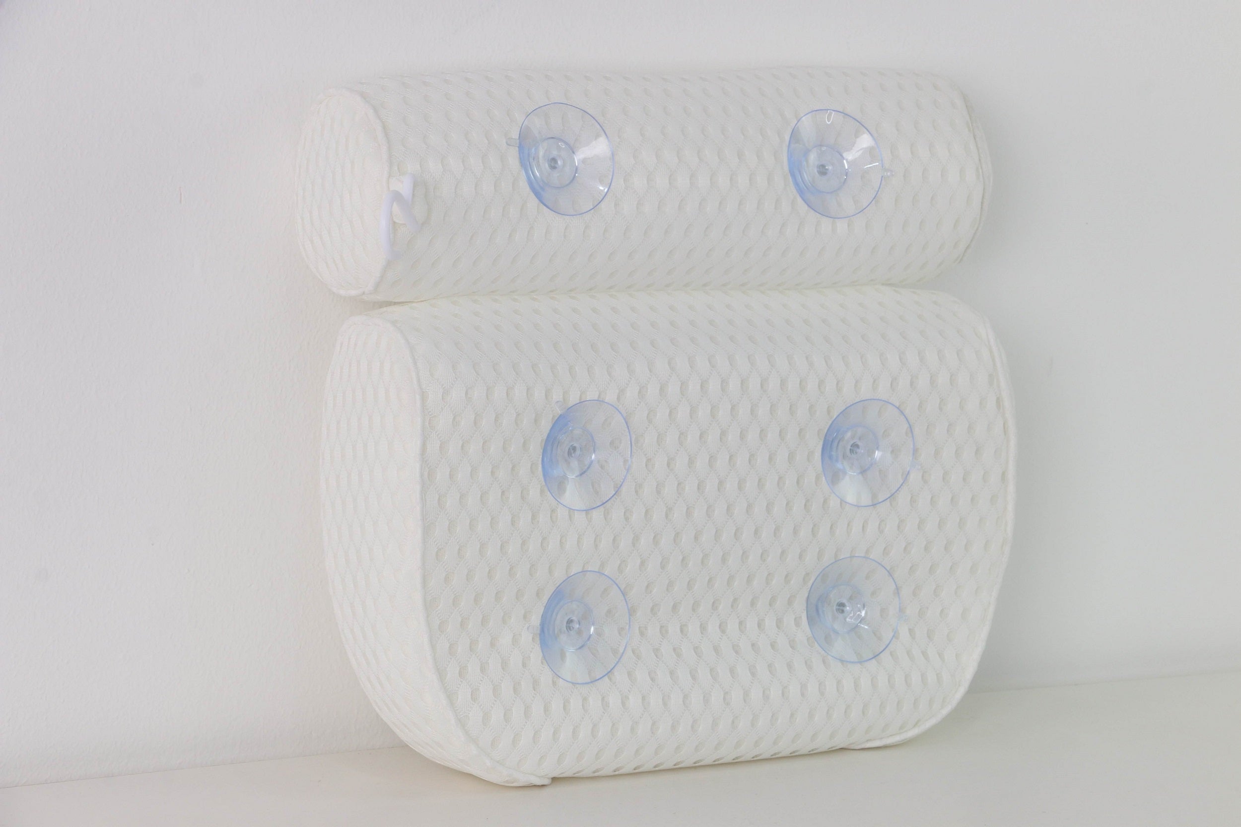 Oreiller de bain pour baignoire, avec 6 ventouses, Technologie 4D Air Mesh, Blanc 35 x 35 cm