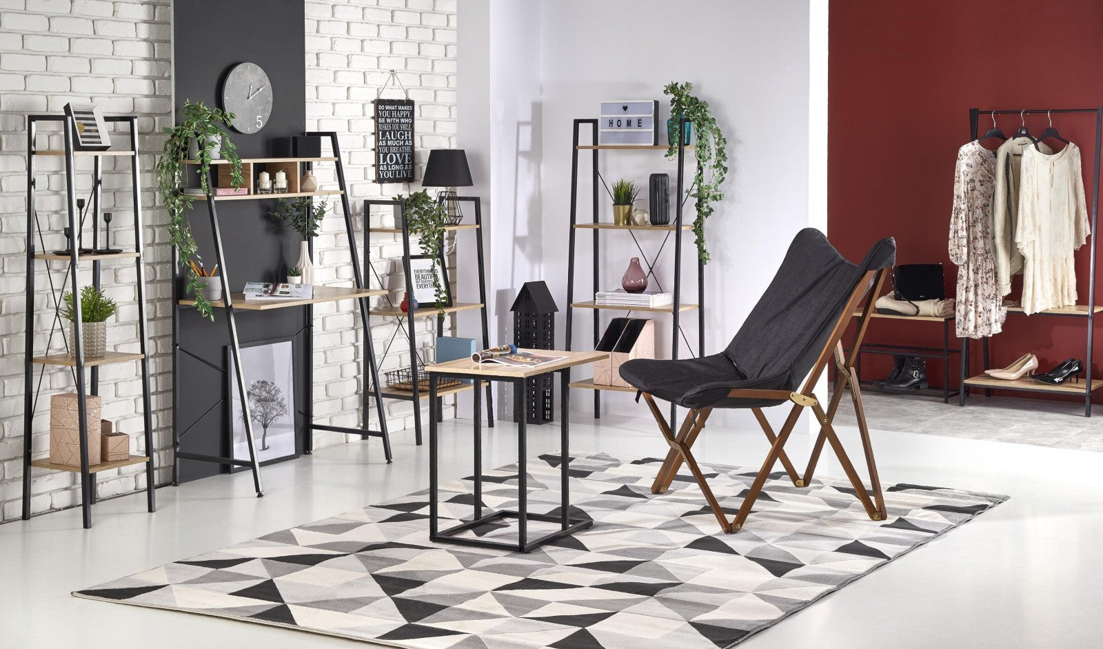 Palette et étagère métal Narvik Reg-2 Chêne Sonoma / Noir, l60xA32xH148 cm
