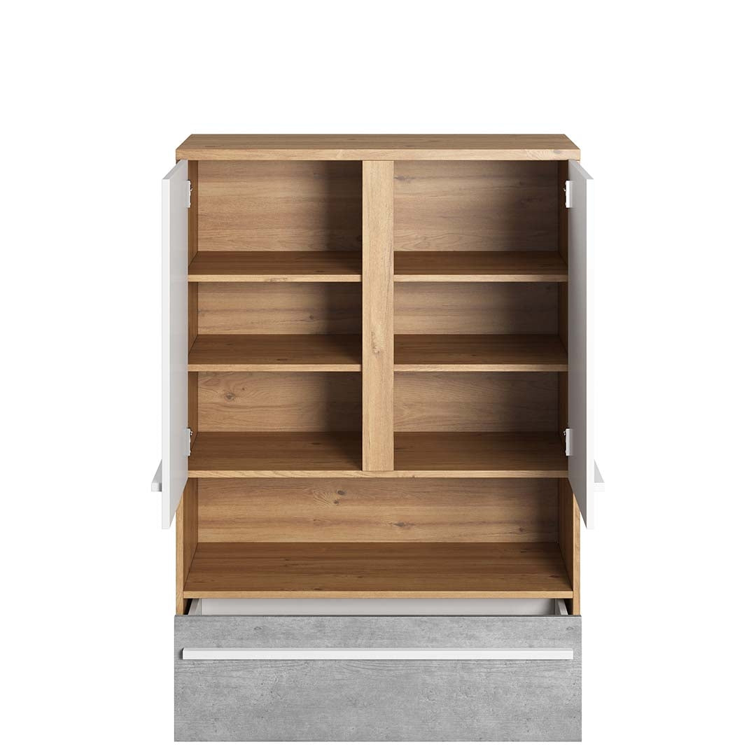 Petite armoire en bois, avec 2 portes et 1 tiroir pour enfants et jeunes, Plano 04, Chêne / Gris / Blanc, L90xW41xH131 cm