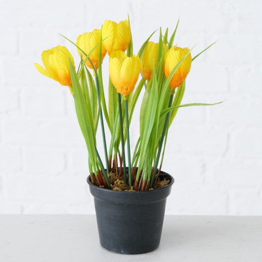 Plante artificielle en pot Tulipe Jaune / Verte, H20 cm
