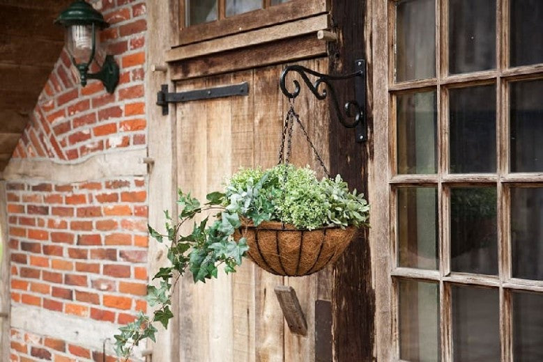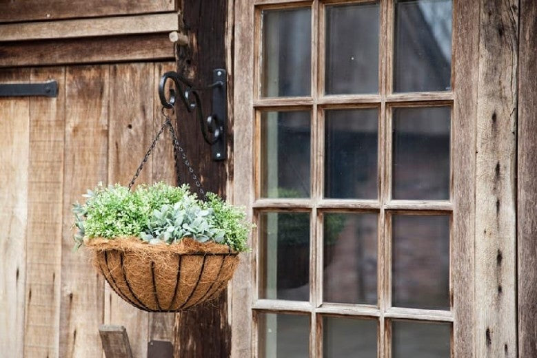 Le produit est fait de métal et de fibre de coco.