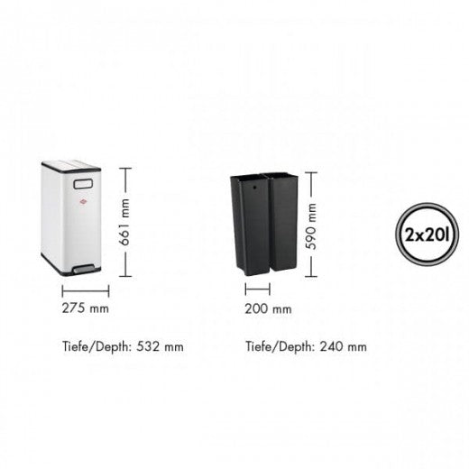 Poubelle à pédale et 2 compartiments, métal, Big Double Master Rouge, 2x20L, l27,5xA53,2xH66,1 cm