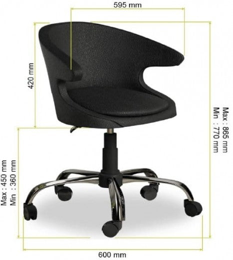 Chaise de bureau pour enfants, rembourrée en éco-cuir perlé noir, l61xA61xH86 cm