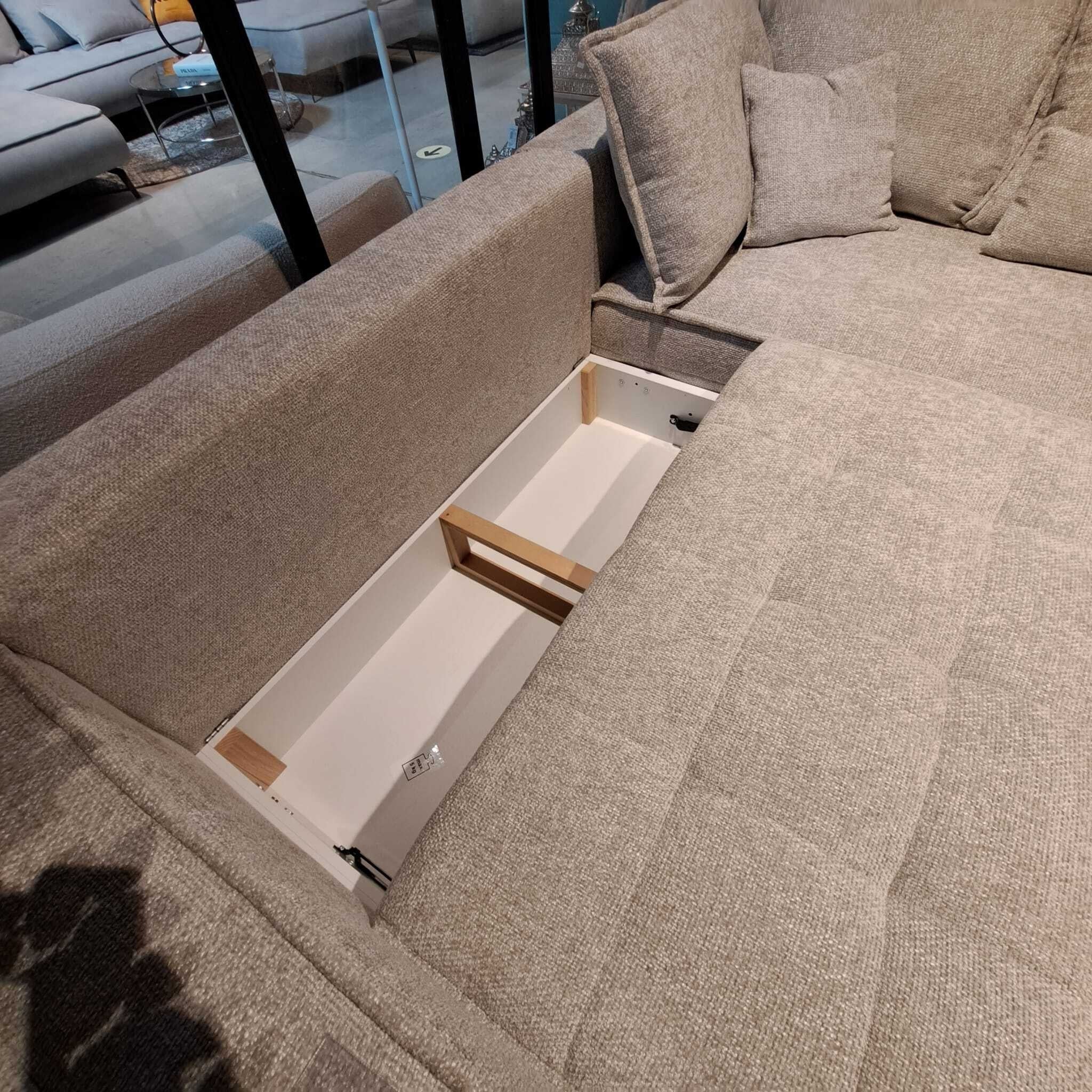 Sensit d'angle extensible, lot de 3, gris, méridienne à droite, boîte de rangement, coussins inclus, L262xL208xH92 cm